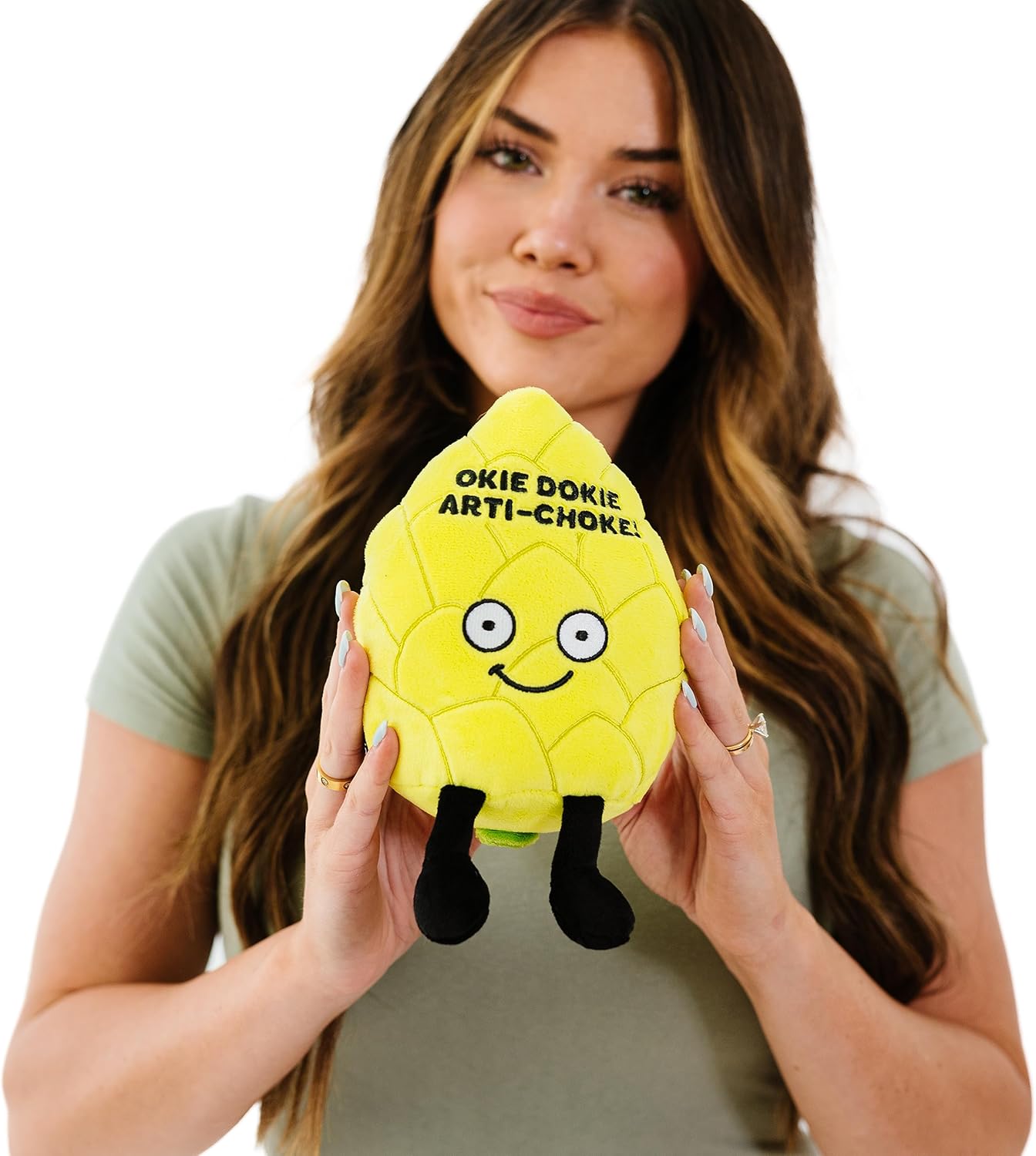 Artichoke Foodie Plushie, Funny Pun Meme Gag Gift, White Elephant, Stocking Stuffer Present, Great for Emotional Support, Fun Desk Accessory, Weighted Base for Display