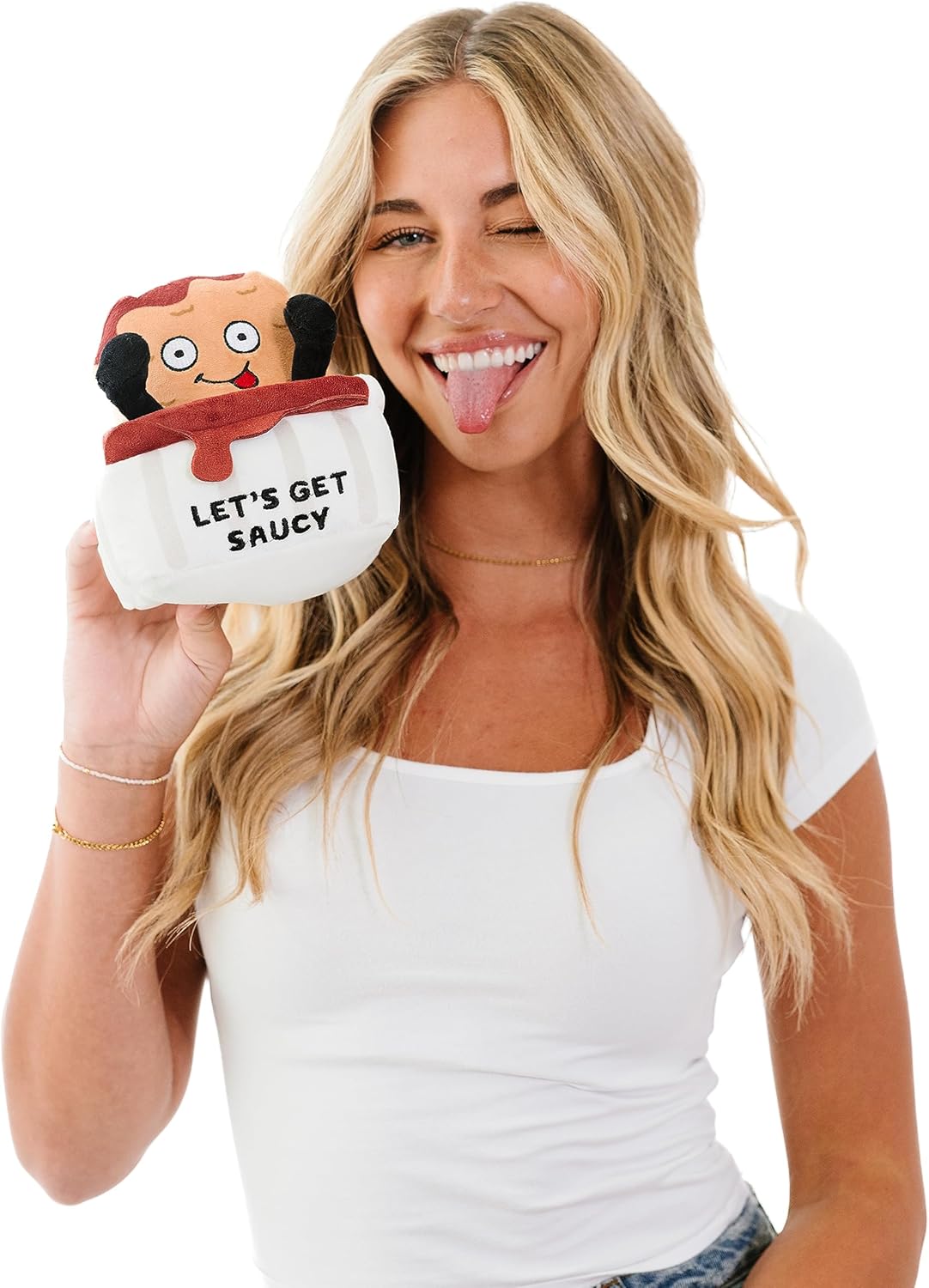 Chicken Nugget Foodie Plushie, Funny Pun Meme Gag Gift, White Elephant, Stocking Stuffer Present, Great for Emotional Support, Fun Desk Accessory, Weighted Base for Display