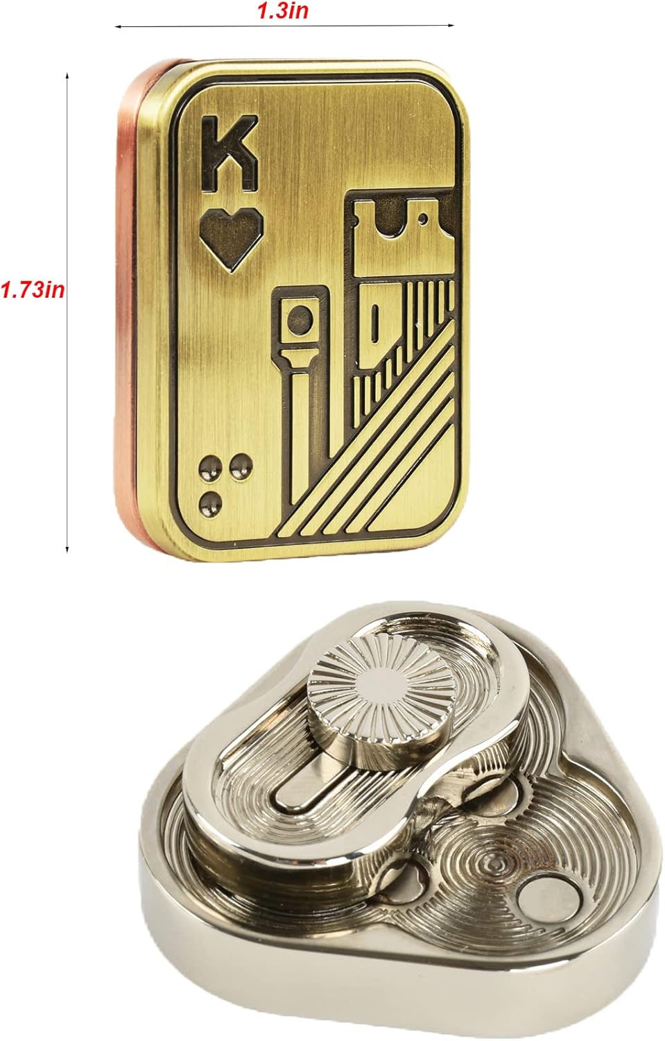 2 Pack EDC Metal Fidget Slider Toys- Stress Relief Toy Metal Slider Fidget Office Desk Toys for Adults (Poker Fidget Slider K + Triangle)