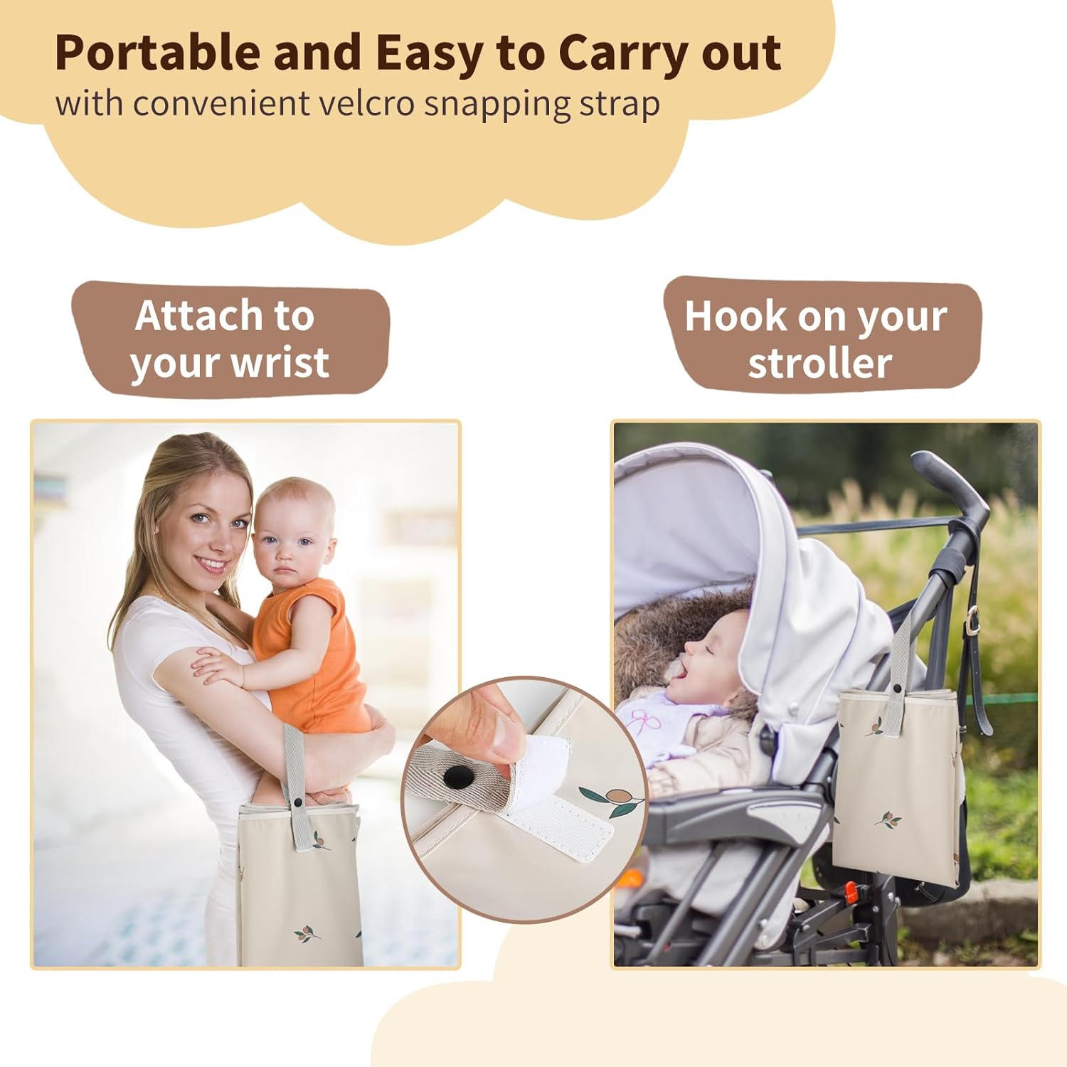 • Easy Carry - Our portable diaper changing pad features a convenient velcro snapping strap that can be easily attached to your wrist, arm or your stroller.