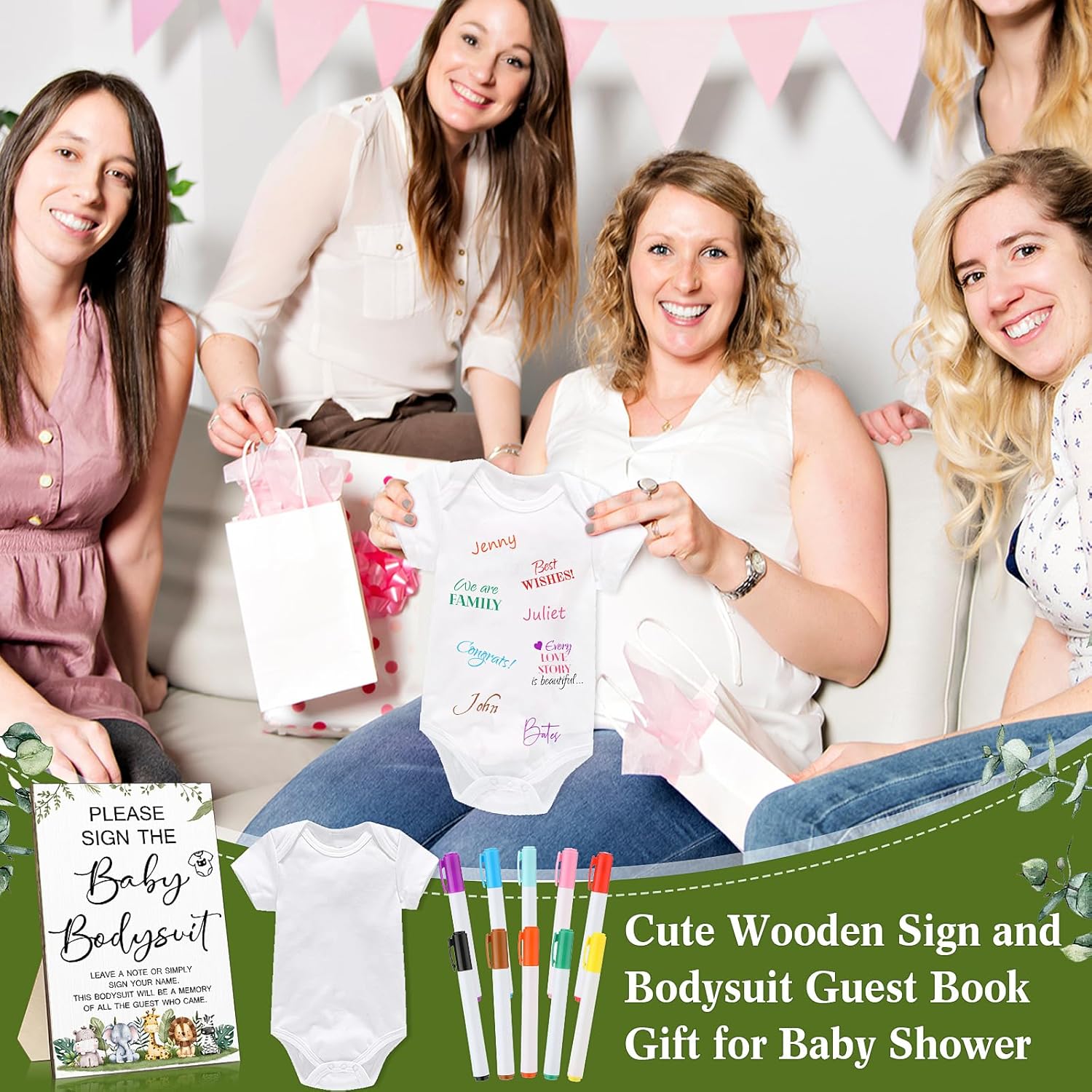 • Nice and Complete Set: there is 1 piece of wooden sign, 1 piece of white bodysuit for baby, and 10 pieces of colorful markers, abundant quantities and nice combinations to satisfy your daily using and baby shower needs