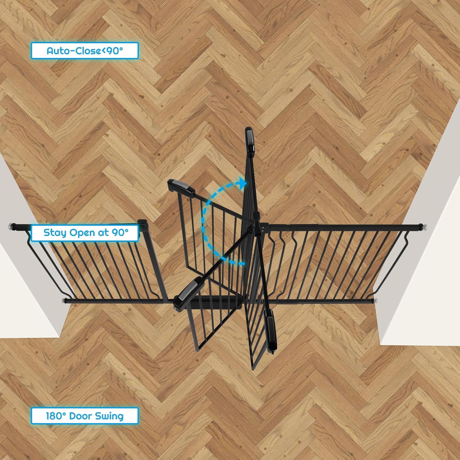 Extra Wide Baby Gate for Stairs Doorways with Door, 30" Tall 75.8-85" Wide Easy Install Dog Gate Indoor, Safety Metal Pressure Mounted Pet Gate with Walk-Thru Auto Close for The House, Black