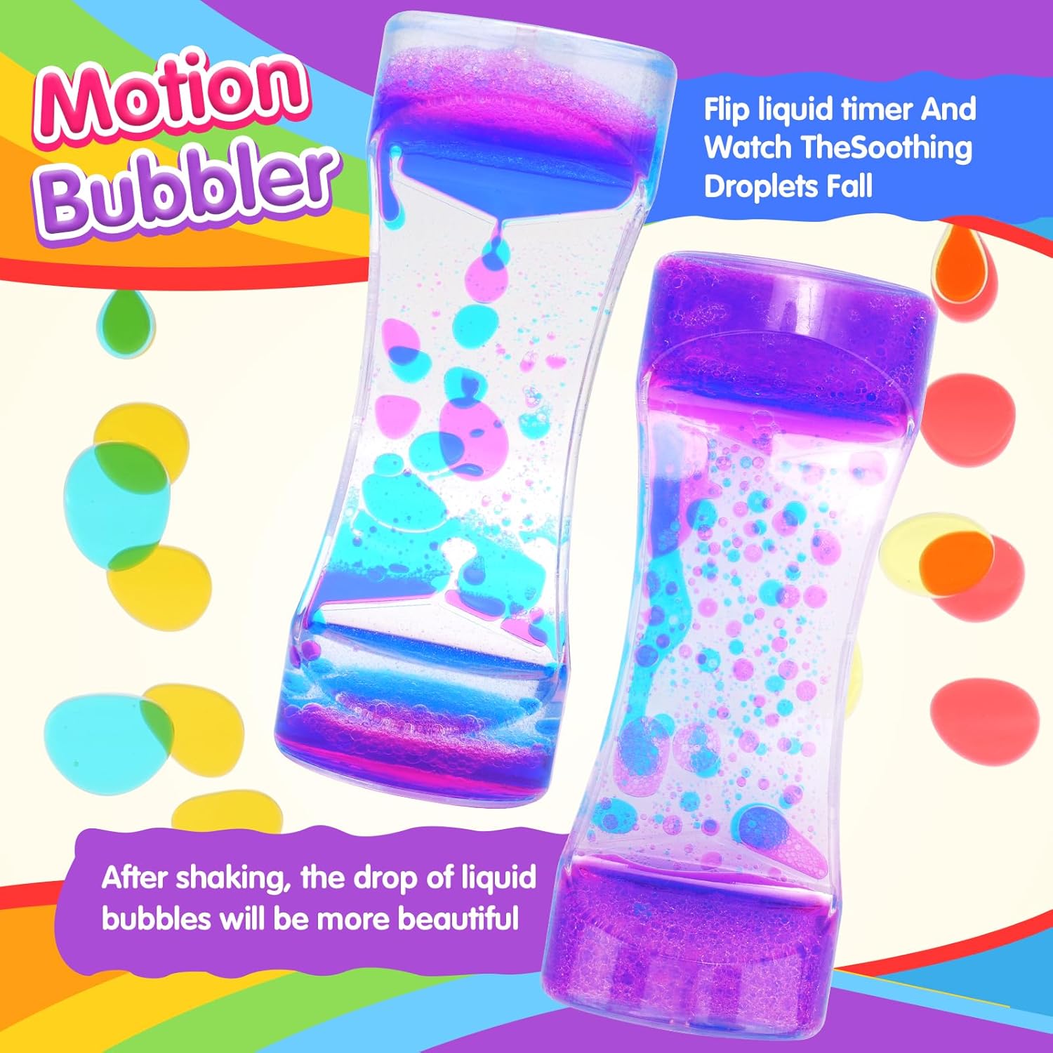 • 【Liquid Motion Bubbler Sensory Toys】The dual-color liquid droplets falling inside the liquid timer sensory toys have a soothing effect, and gravity will guide the dual-color liquid droplets to fall down, attracting children's attention. This sensory toy can help improve concentration, fidget toys enhancing children's learning in the classroom.