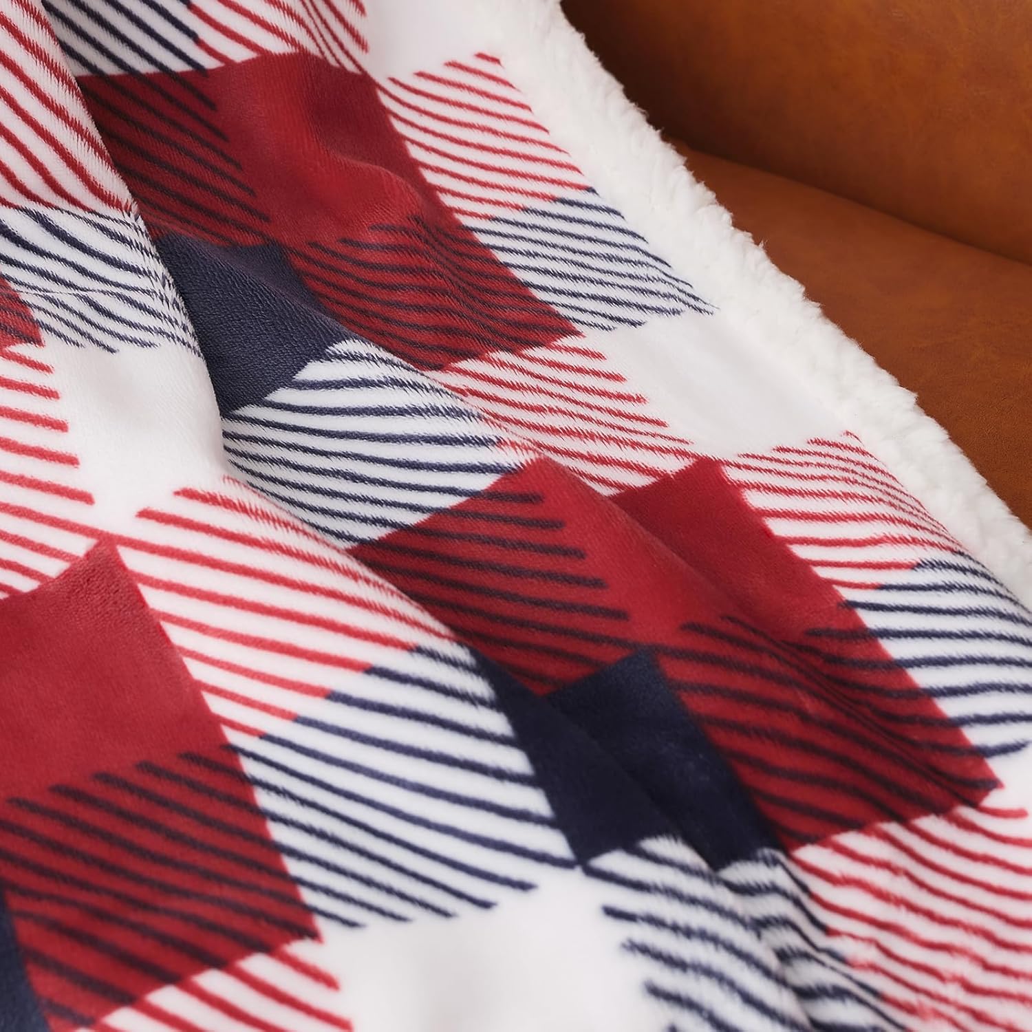 Touchat Sherpa Plaid Twin Blanket 60" X 70", Fuzzy Fluffy Soft Cozy Throw Blanket, Twin Size Plush Fleece Flannel Plush Microfiber Blanket for Couch Bed Sofa (Red Color)