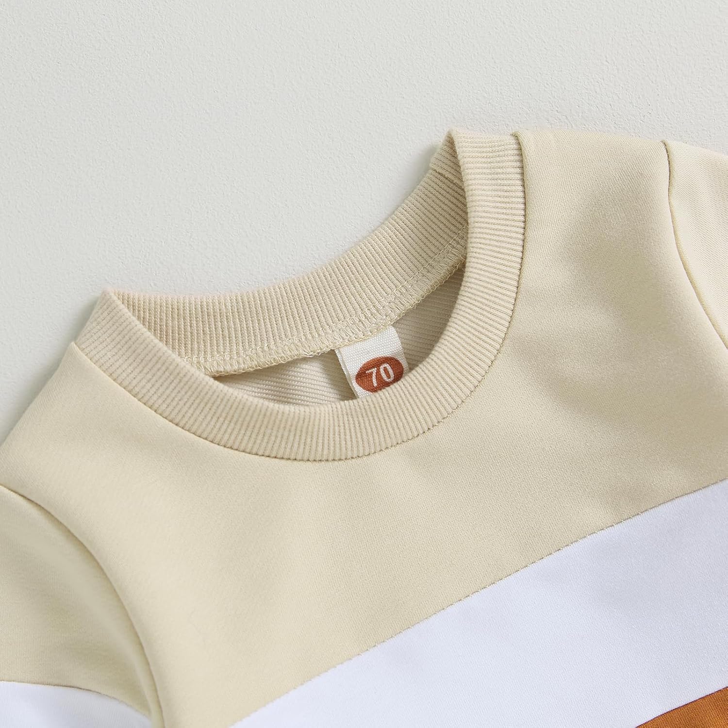 Kupretty Toddler Baby Boy Fall Winter Clothes Color Block Long Sleeve Sweatshirt Pullover Tops + Joggers Pants Outfit Set