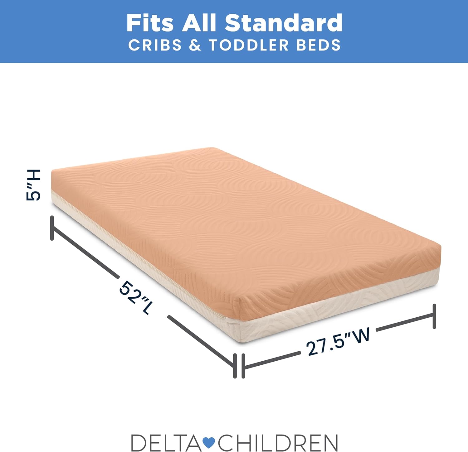Delta Children Summer Breeze Mattress - Breathable Baby Crib & Toddler Mattress with Cloud Core - Machine Washable Cover - GREENGUARD Gold – Waterproof - Sustainably Sourced Core, Apricot/White