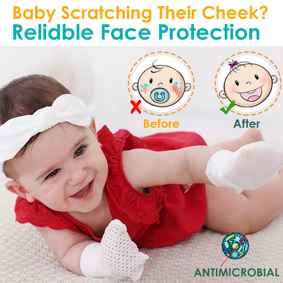 • 【What you get】: We provide scratch mittens newborn with worry-free 12-month and 24/7 customer service. Free laundry bag, Hand washing is the best or use a laundry bag to wash it with a washing machine.