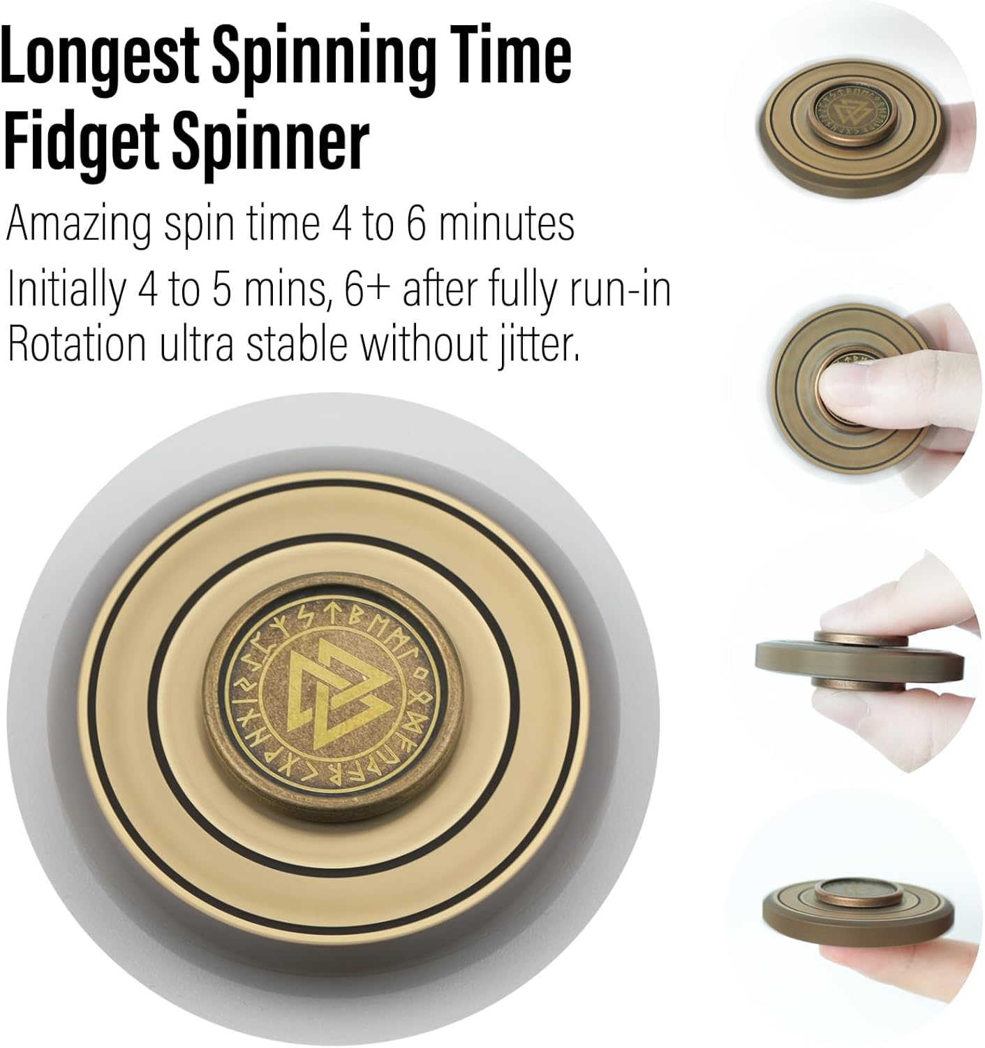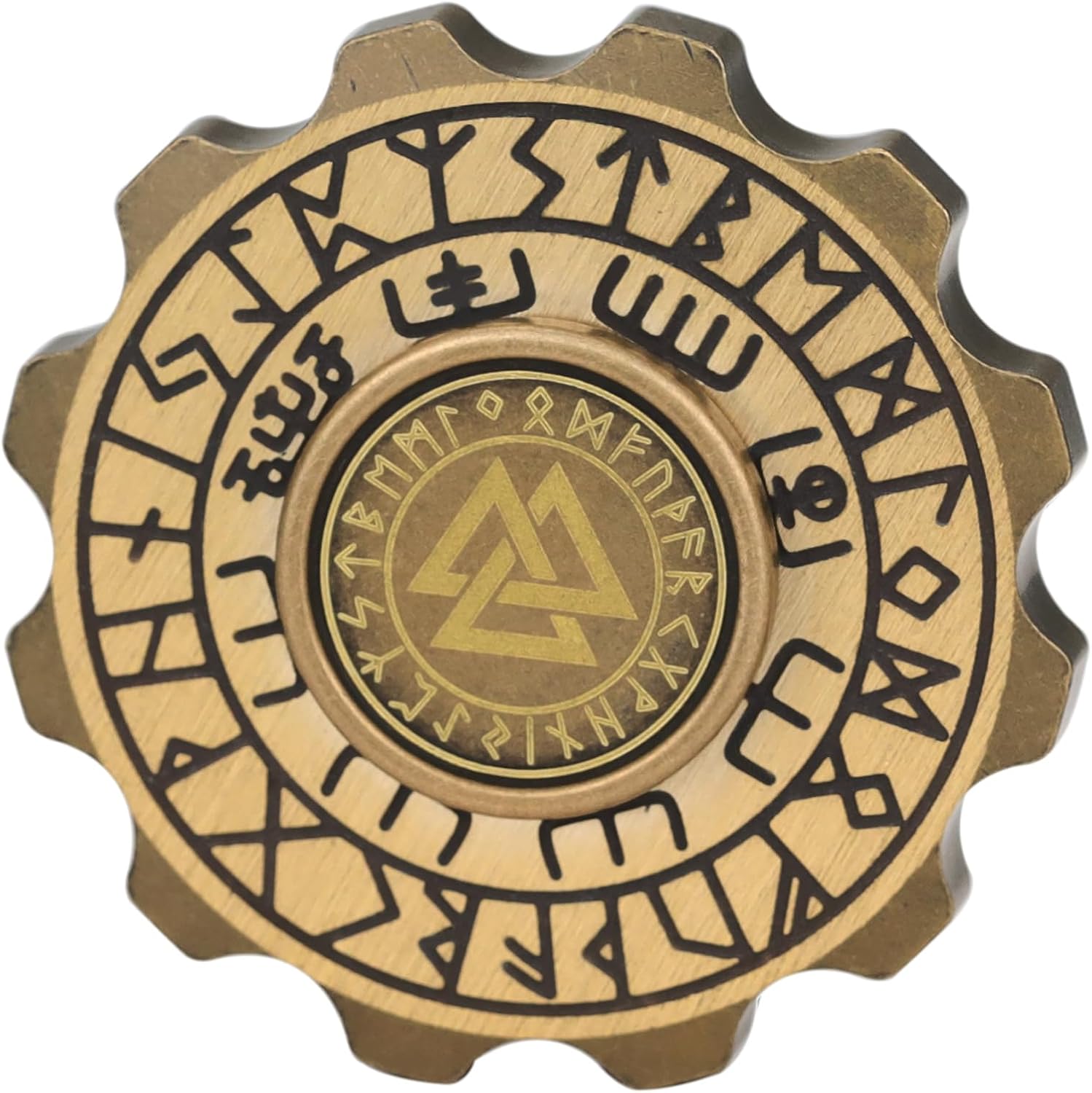 FREELOVE Metal Fidget Spinner, Viking Pirate Haptic Gyro, Heavy Copper Hand Spinning, Small Round Gear Fidget Block, Premium Steel Bearing Silent Long Spinning for Adults Anxiety Cool