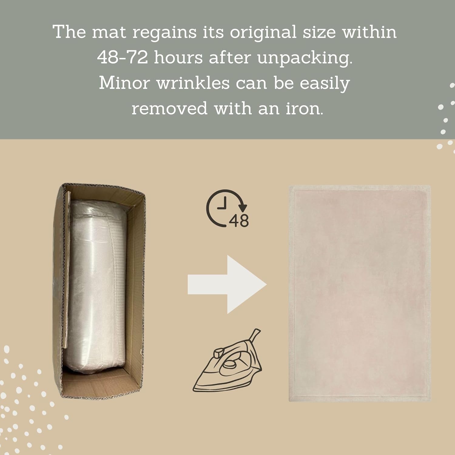 • Premium high-density memory foam is 1 Inch thick and recovers its size faster (within 3-4 days) compared to cheaper alternatives. The large and thick floor mat for baby arrives blanket-folded and does not require ironing the wrinkles, unlike vacuum-packaged rugs. Compressed packaging saves space during transportation reducing carbon emissions.