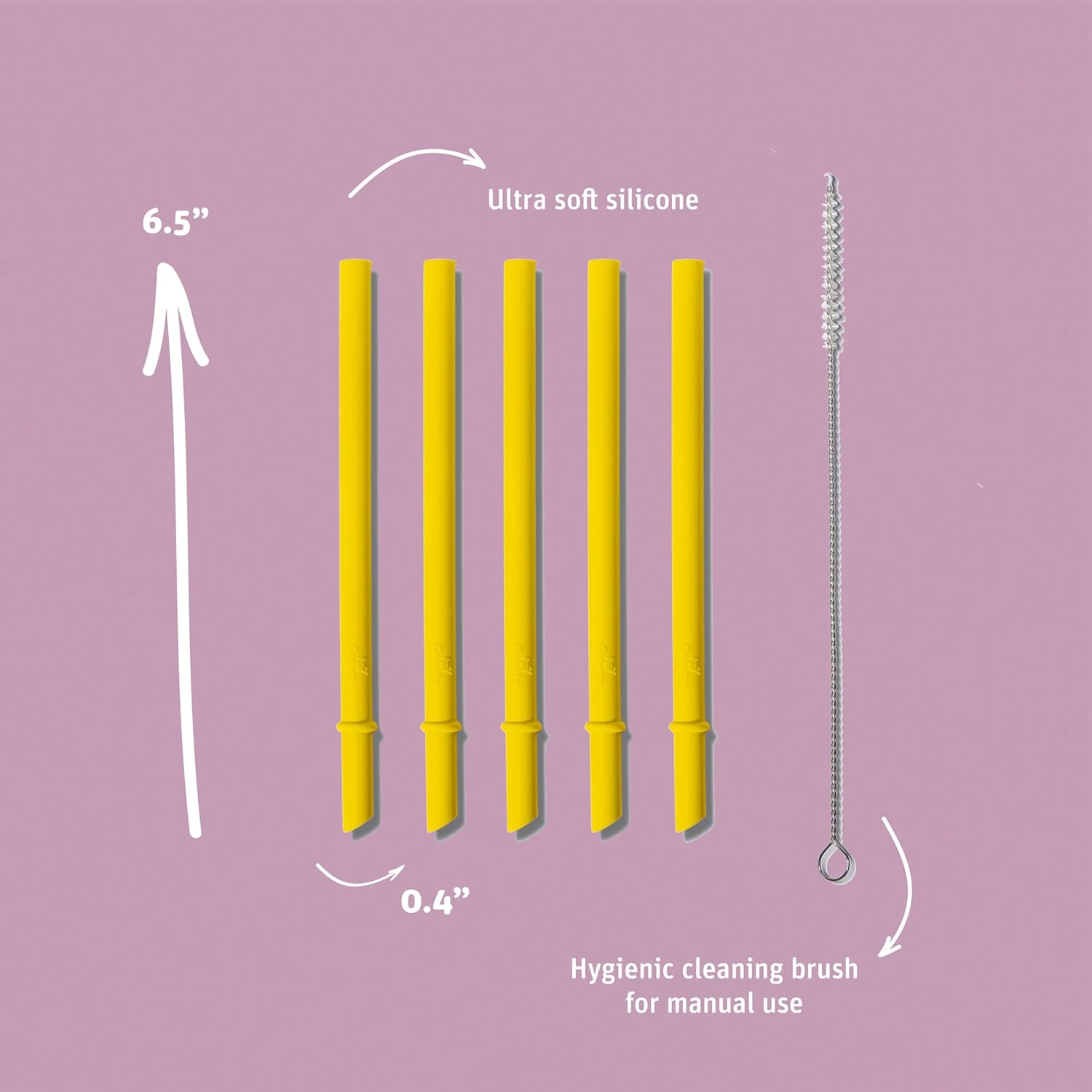 Avanchy Silicone Training Sippy Cup with Straw Lid – For Babies 6+ Months to Toddlers 1 Year Old – 8 oz Infant Water Cup for Baby Led Weaning, Yellow + 5 Reusable Straws