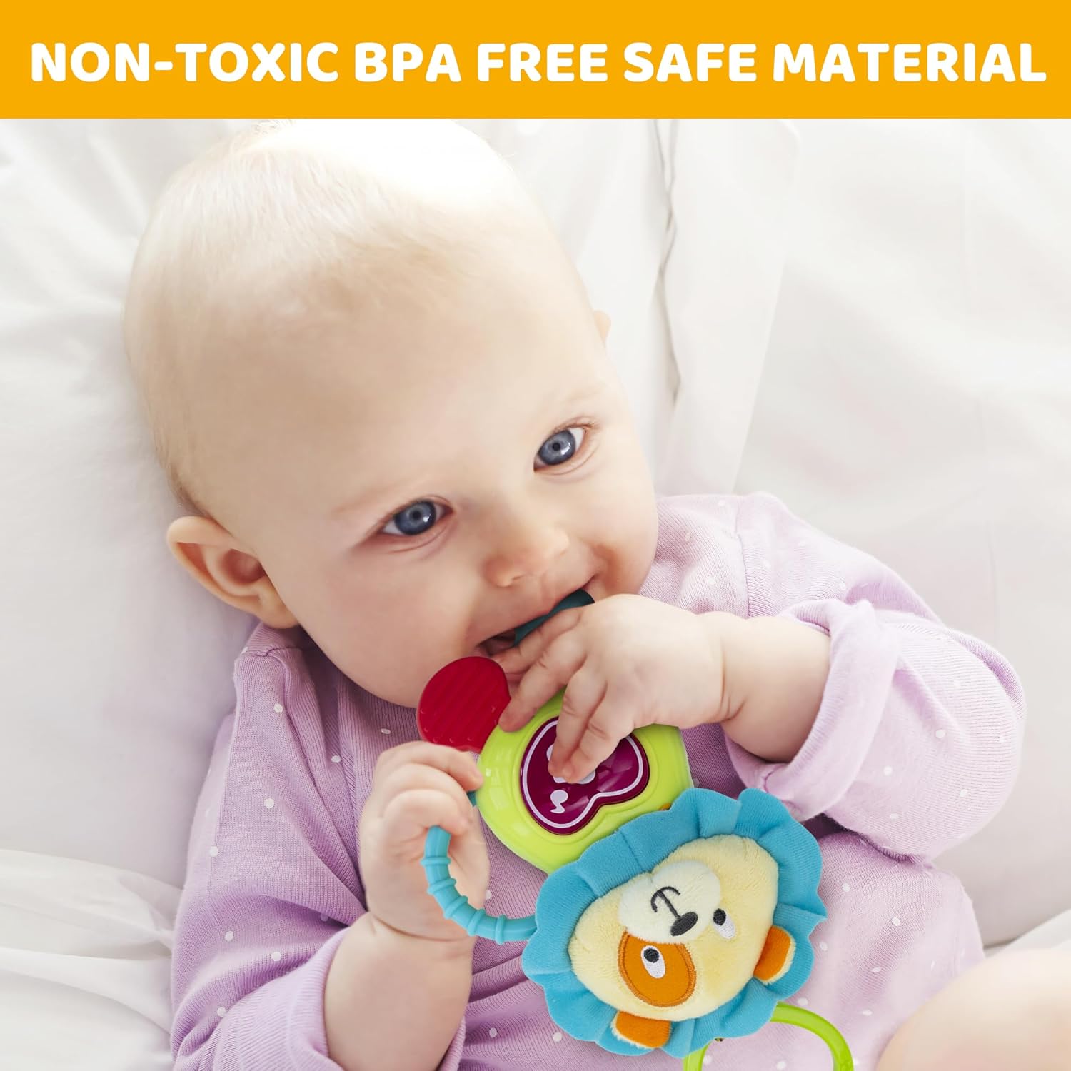 KiddoLab Musical Caesar Teething Toy for 3 Months and Up - Baby Teether, Rattle & Musical Toy with Lights & Fun Sound Effects - Baby Hanging Toy Easily Fits to Crib, Stroller and Car Seats