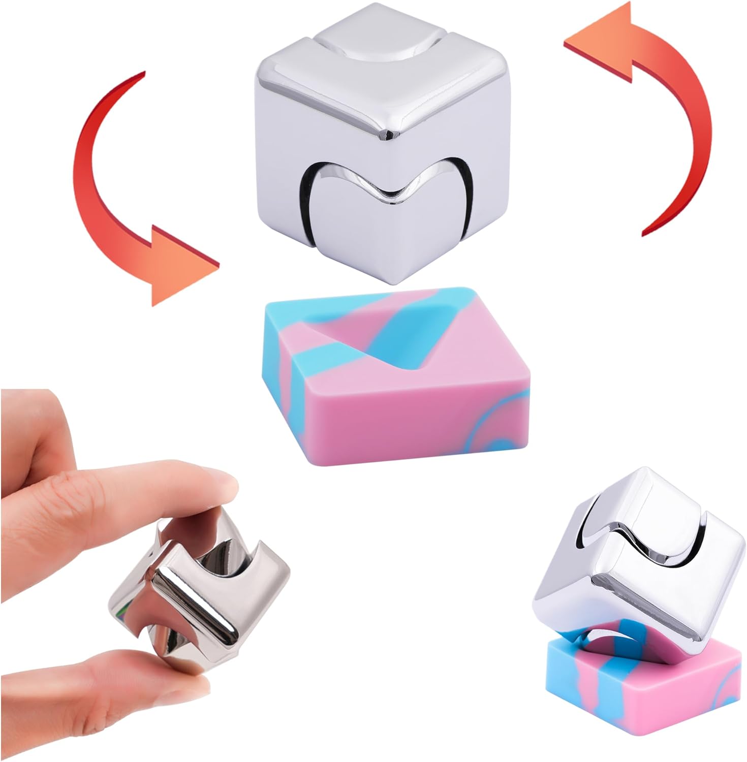 Desk Fidget Toys Spinner-Cube: Figetsss Cool Gadgets Metal Kinetic EDC-Toy with Silicone Base, ADHD Tools Cool Stuff Thing Office Toy Game Stress Relief Gift for Kid Children Teen Adult Christmas