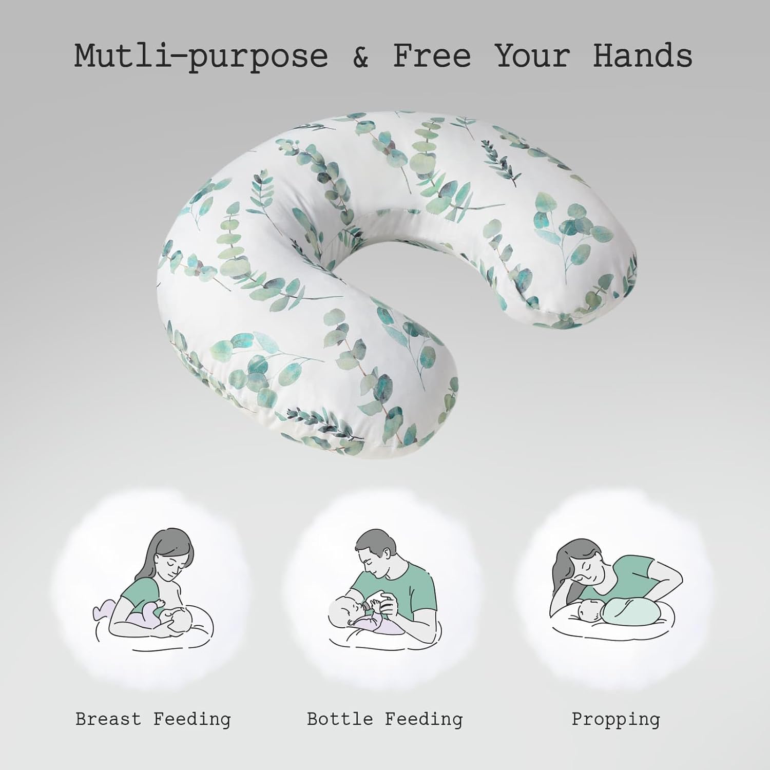 Little Grape Land Nursing Pillow for Infants, Breastfeeding Pillows, Baby Support Pillow for Nursing, Bottle Feeding, Tummy Time with Machine Washable Cover & Breathable Filling (Green Leaves)