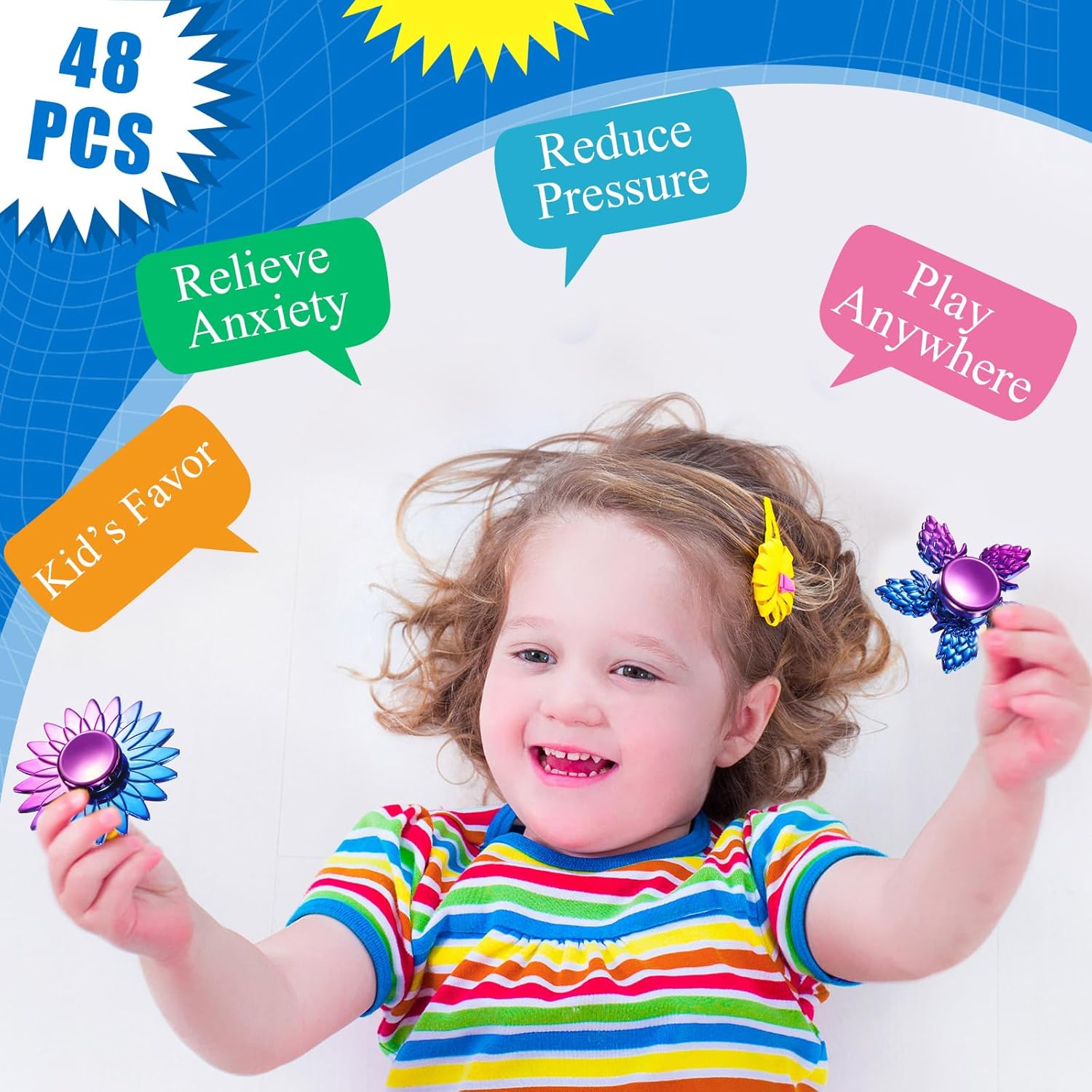 Woanger 48 Pcs Fidget Spinner High Speed Hand Spinners for Anxiety ADHD Adults Boys Girls, Anxiety Stress Relief Toys for Focus Party Favor Classroom Prizes(Gradient Color,Cool Style)