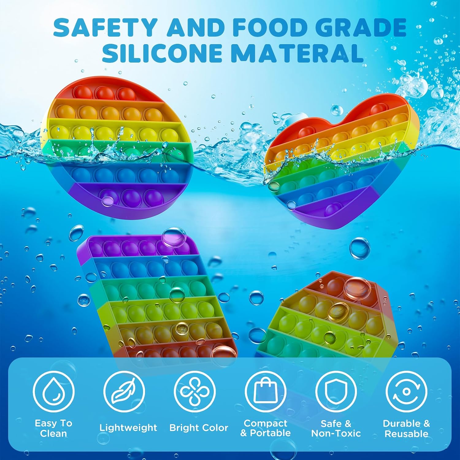 - 【Food Grade Silicone Material】This bubble toy is made of high quality food grade silicone which is safe, non-toxic and durable,can be played with confidence.It is very soft and your fingers won't get tired of playing with it for a long time.easy to clean, just rinse with water or wipe with a wet paper towel to reuse.