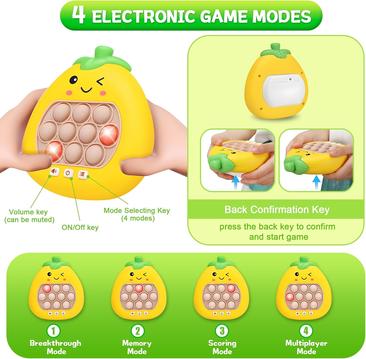 - 【Ideal Gift】This hand held games for kids pop fidget toy is ideal for kids teens and even adults. and easy to carry, a good on-the-go toy for play in a car, school, office, camping, travel, have fun anytime anywhere! Both parents and children will appreciate the combination of fun and education that this pop fidget toy offers. With its various game modes, Our electronic games will keep children engaged, entertained, and mentally stimulated for hours on end.