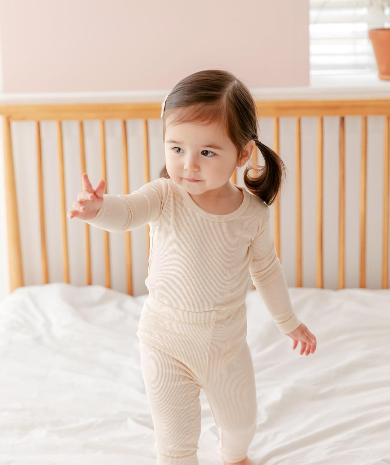 • COMFORTABLE FABRIC - This stylish pj set is a perfect blend of multi-functional style and comfort ribbed knit. Viscose rayon is like a smooth material similar to silk breathable, similar to cotton in this regard. Enough to help protect child's delicate skin. That's why pajama set is Easy to dye, light weight, and natural material. It will give perfect fit.