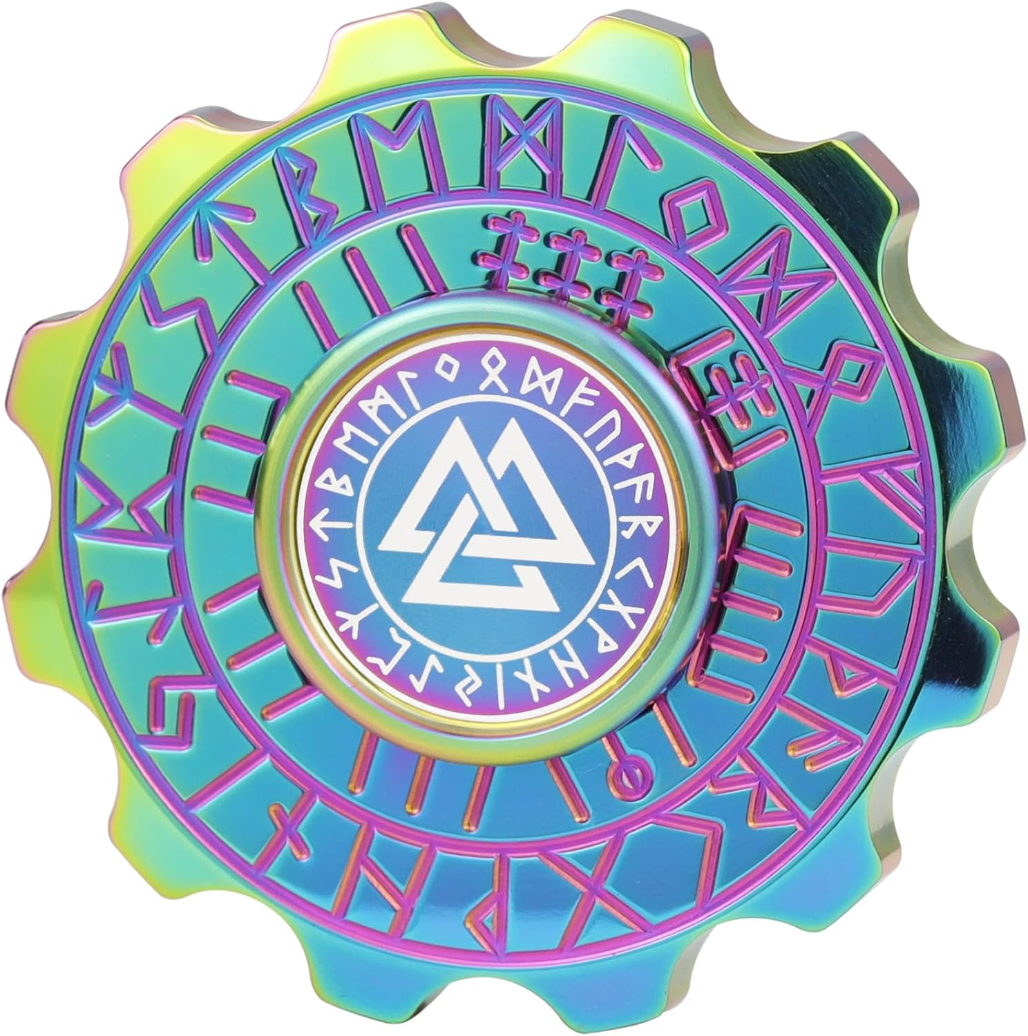 FREELOVE Metal Fidget Spinner, Viking Pirate Haptic Gyro, Heavy Stainless Steel Hand Spinning, Small Round Gear Fidget Block, Premium Bearing Silent Long Spinning for Adults Anxiety Cool, Rainbow