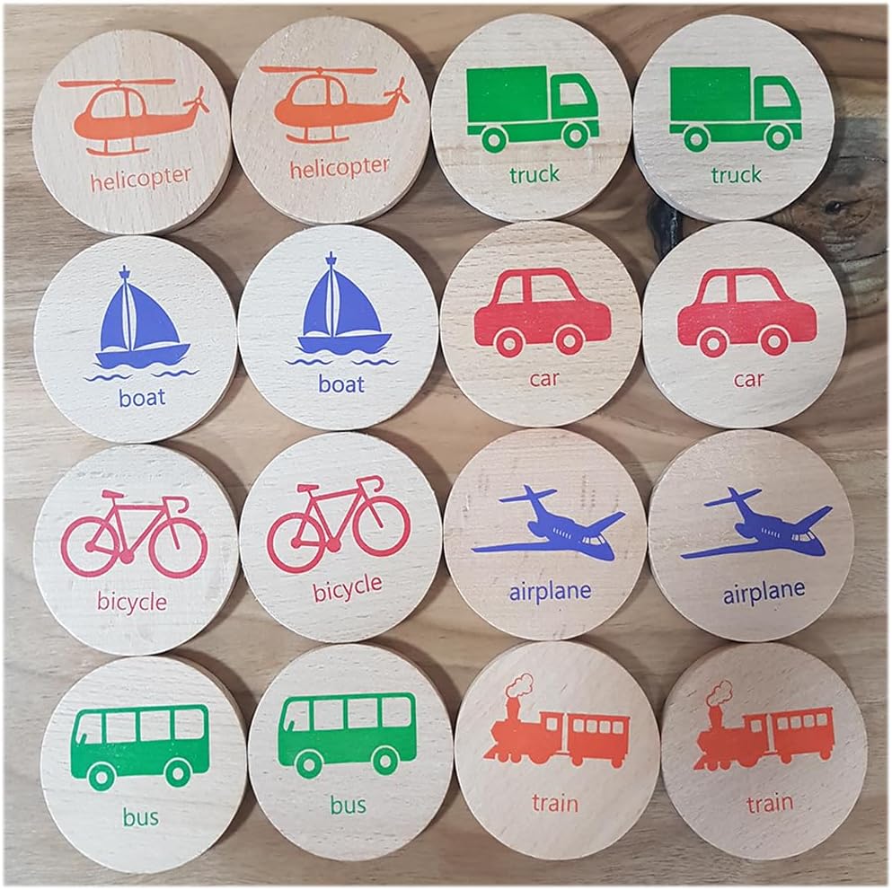 bee smart Wooden Memory Game - Matching Memory Game for Kids 3 and Up, 16Pcs | Educational Toy for Preschool Toddlers Board Games (Vehicles)
