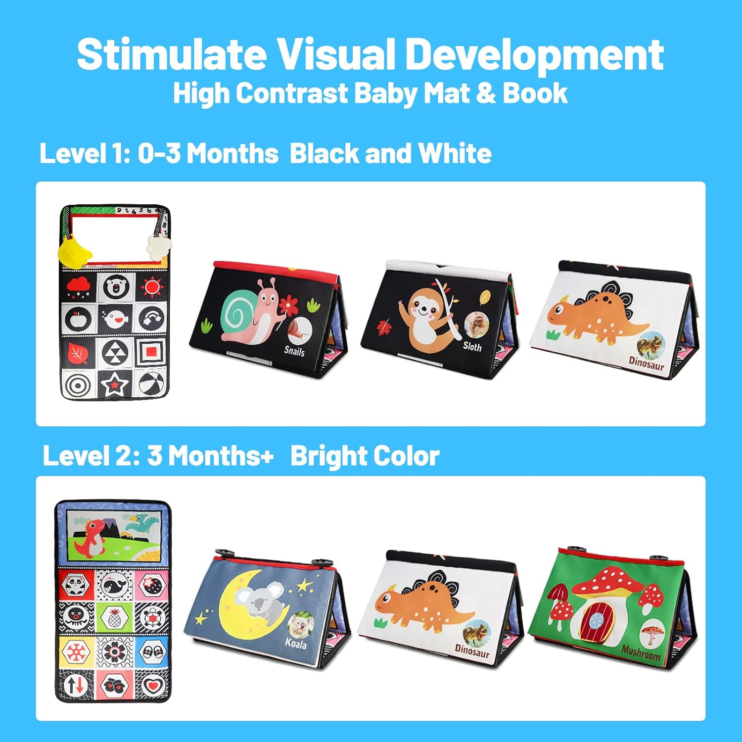 Baby Mirror Toys for Tummy Time, Newborn Infant 0 3 4 6 12 Months Old Boy, Girl Gift. Brain Developmental Montessori Sensory High Contrast Crinkle Book w Safe Mirror for Floor, Crib, Car, Bouncer