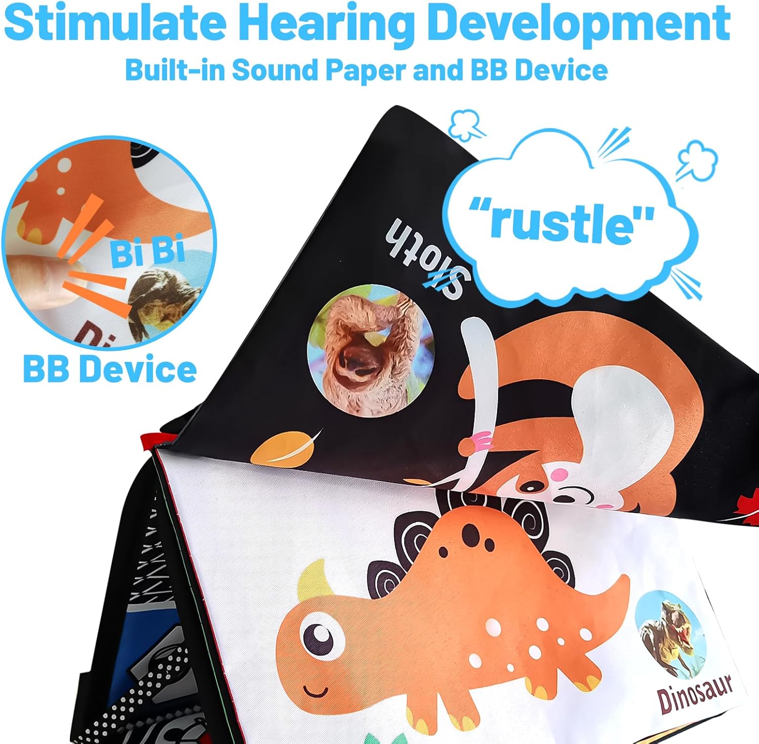 • 【 High Contrast Baby Book for Visual & Hearing Stimulation】Removable High-contrast color is easier to attract baby's attention, stimulate baby's vision, with cute animal and plant patterns, cultivate newborn's sensory of color, shape and crinkle sound; High contrast baby toys for newborn. Ideal Newborn toys 0 3 6 12 months brain development.