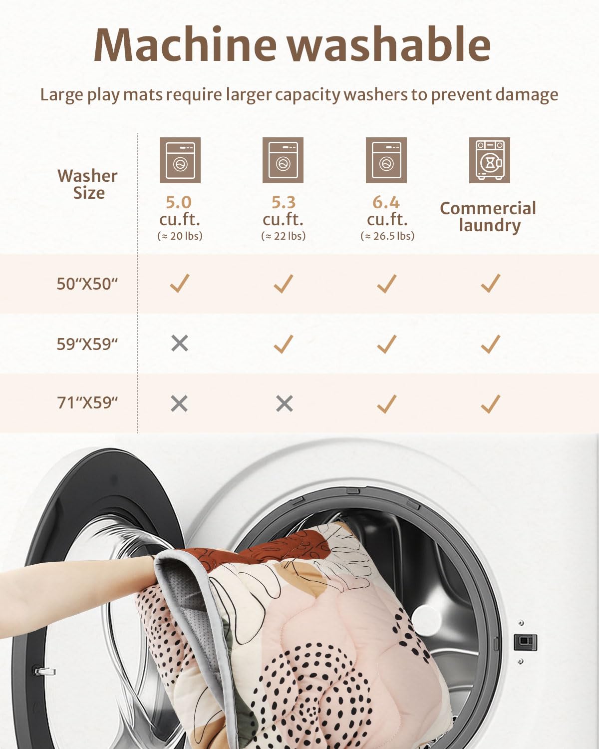 • Extra Thicker & Large - Blissful Diary baby play mat is thicher than other brand, which has enough cushion for the baby to roll around without hitting head on the floor. This 71 x 59 inch playpen mat provides an extra large space for babies to relax, play and work on their developing skills