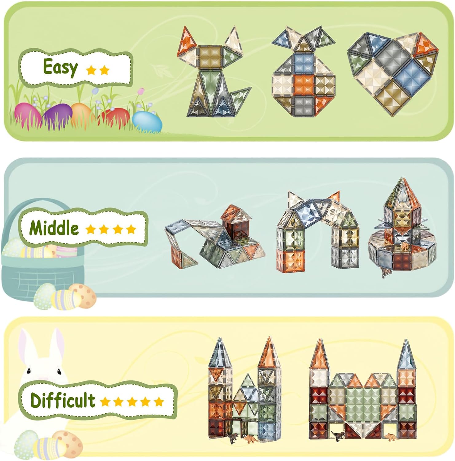 • 【TOGETHER IN THE NATURAL WORLD】This set of magnetic blocks helps children to learn about geometric shapes and nature's colors from an early age. Build an indoor natural world with these eye-friendly natural color magnetic tiles.