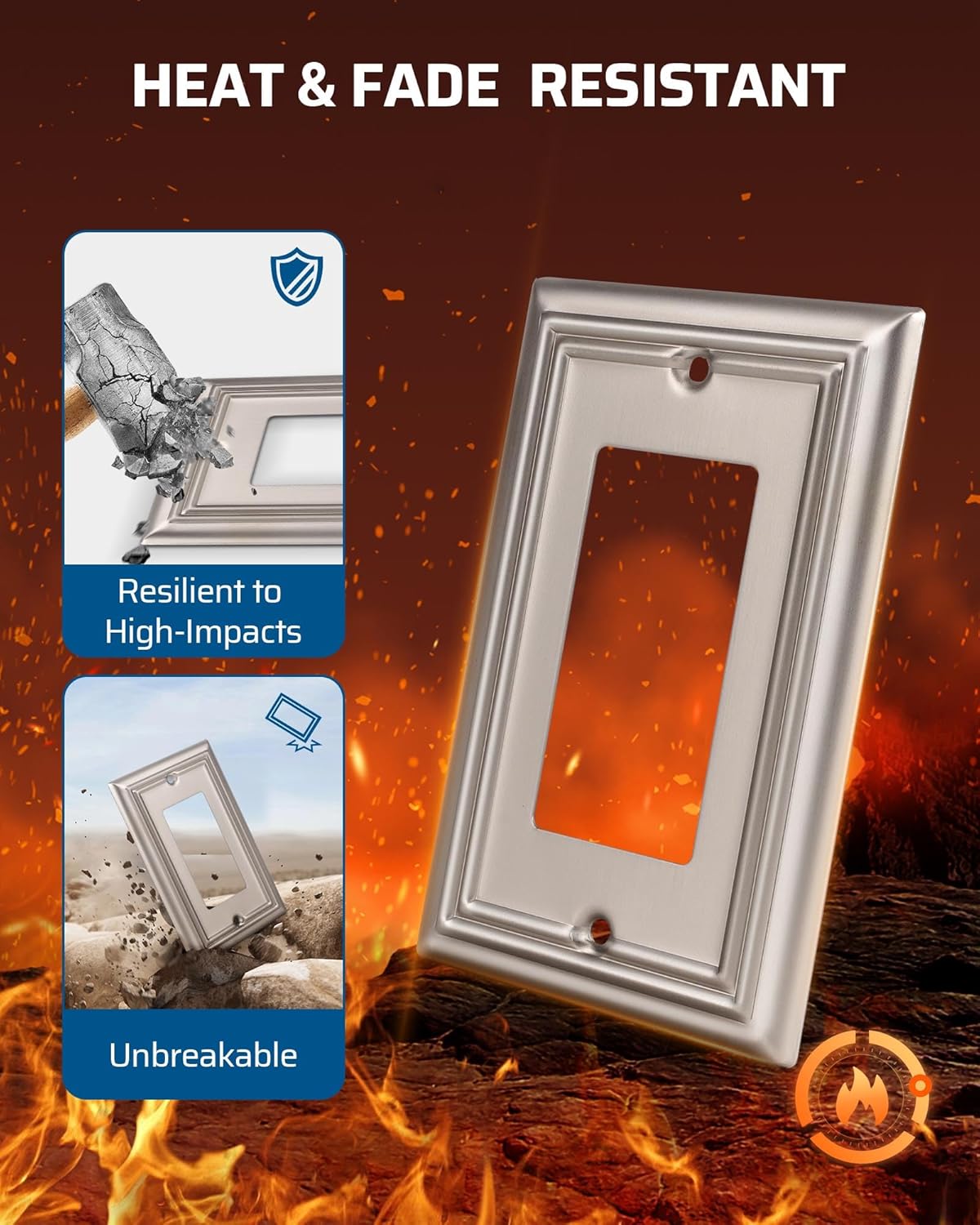 • [Durable Metal Wall Plate] Metal outlet covers offer excellent heat, deformation, and corrosion resistance compared to plastic panels, ideal for long-term use; also easy to clean, durable and long-lasting