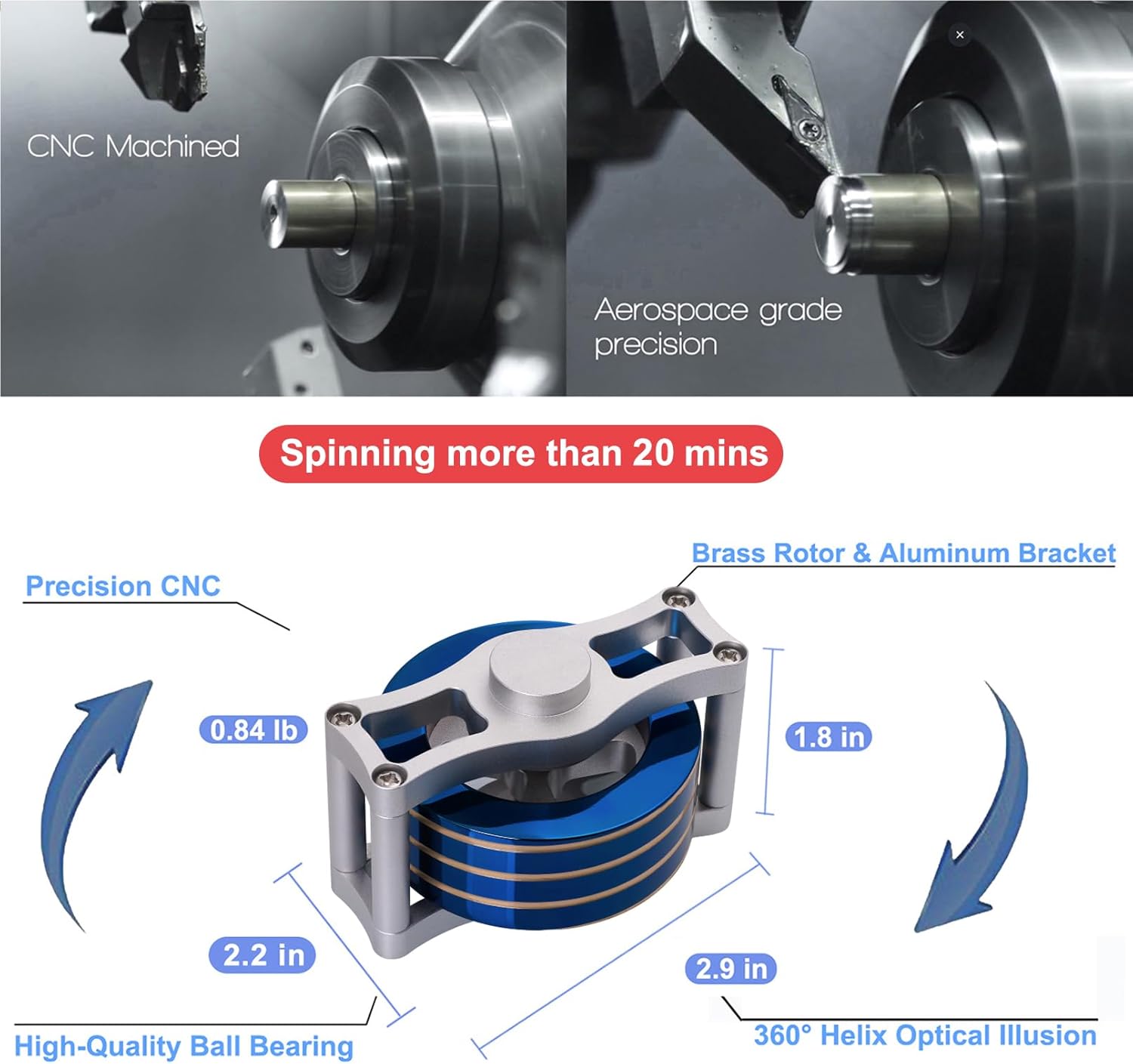• Visual-Illusion: The brass rotor is engraved with threading to create a spiral effect, creating a 360° full-body optical illusion effect as it spins almost silently. It's a nice choice for creators, makers, and anyone looking to unleash their inner creativity and imagination.