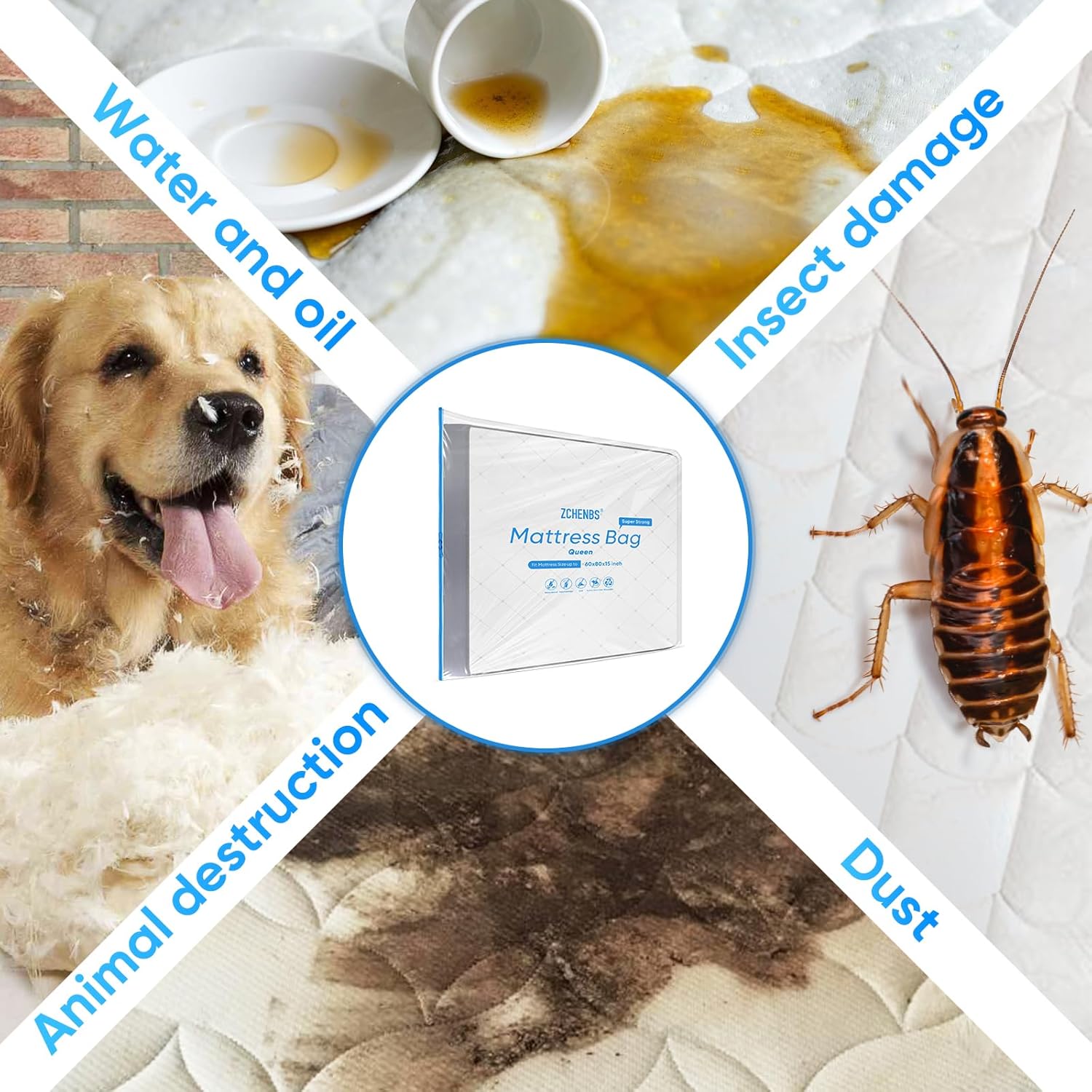 ZCHENBS® – Mattress Bags for Moving and Storage,Mattress Bag with Zippers,5 Mil Ultra-Thick Bed Bag,Waterproof,Anti-Tear,Heavy-Duty Mattress bag (Transaparent/Blue, Queen-(1 Pack))