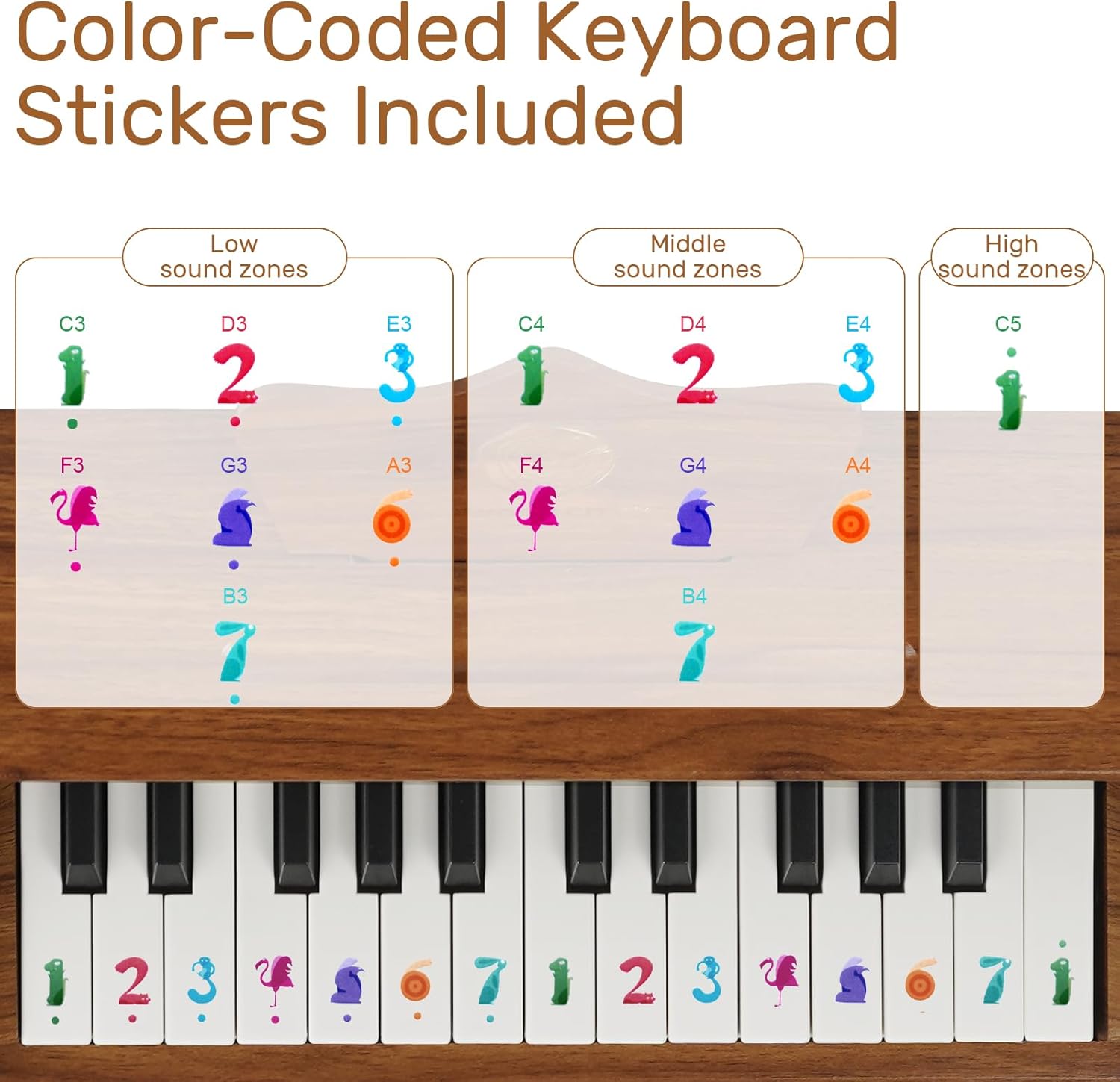 • 【Accessories Included】- Our piano is complete with a music stand & color-coded keyboard stickers for an immersive musical experience.