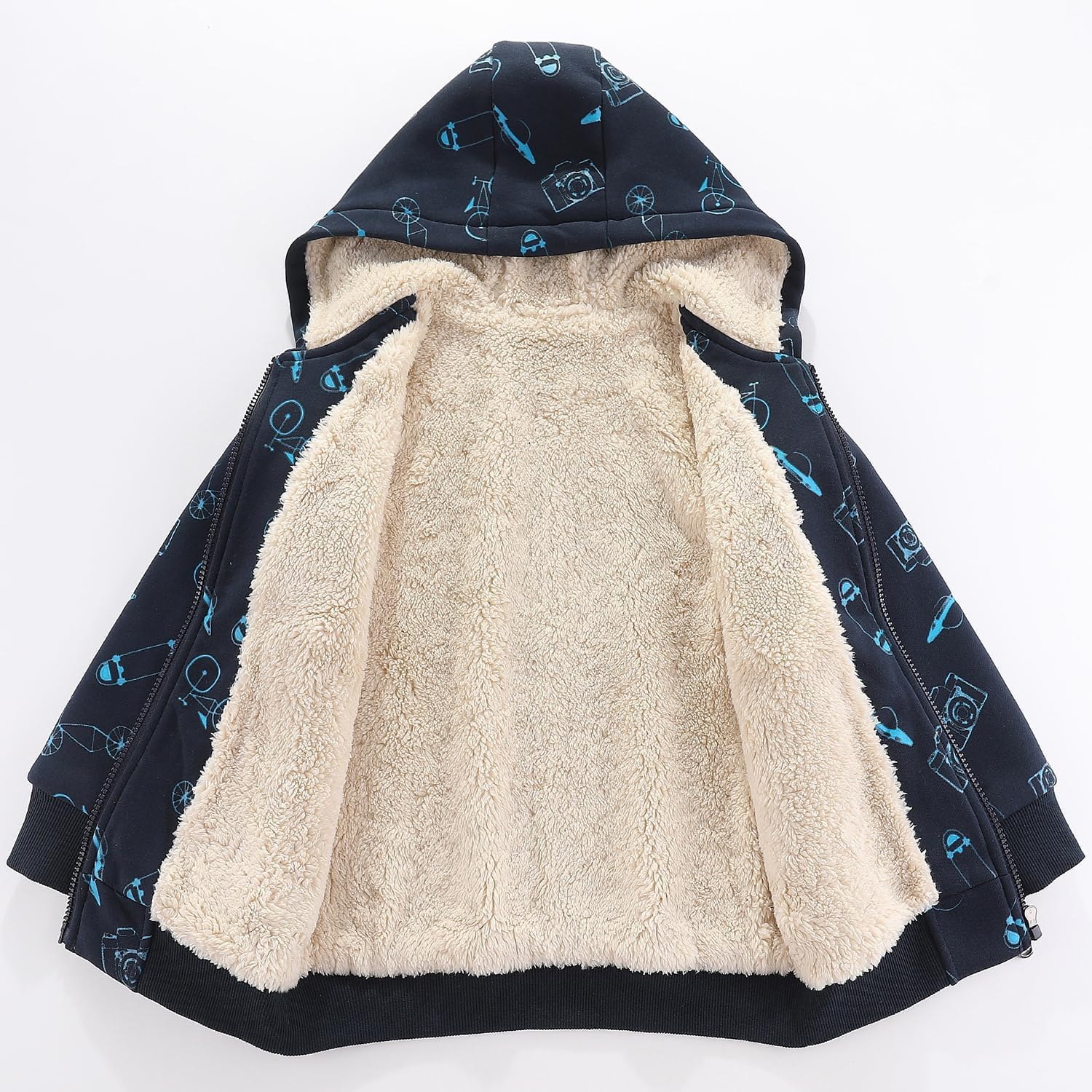 • Boy's hoodies are crafted from soft and breathable sweatshirt fabric,and they feature a plush FLEECE LINED cover that extends throughout the entire jacket. This includes the arms, back, front, and hood, ensuring that your child stays comfortably warm all day long.