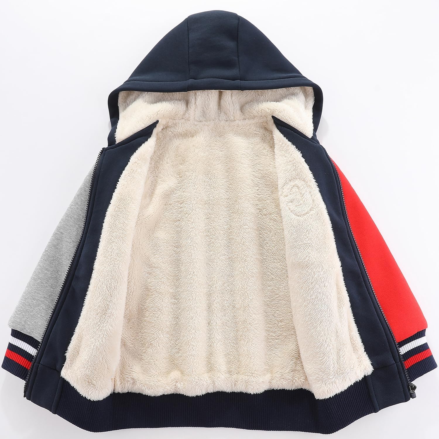• Boy's hoodies are crafted from soft and breathable sweatshirt fabric,and they feature a plush FLEECE LINED cover that extends throughout the entire jacket. This includes the arms, back, front, and hood, ensuring that your child stays comfortably warm all day long.