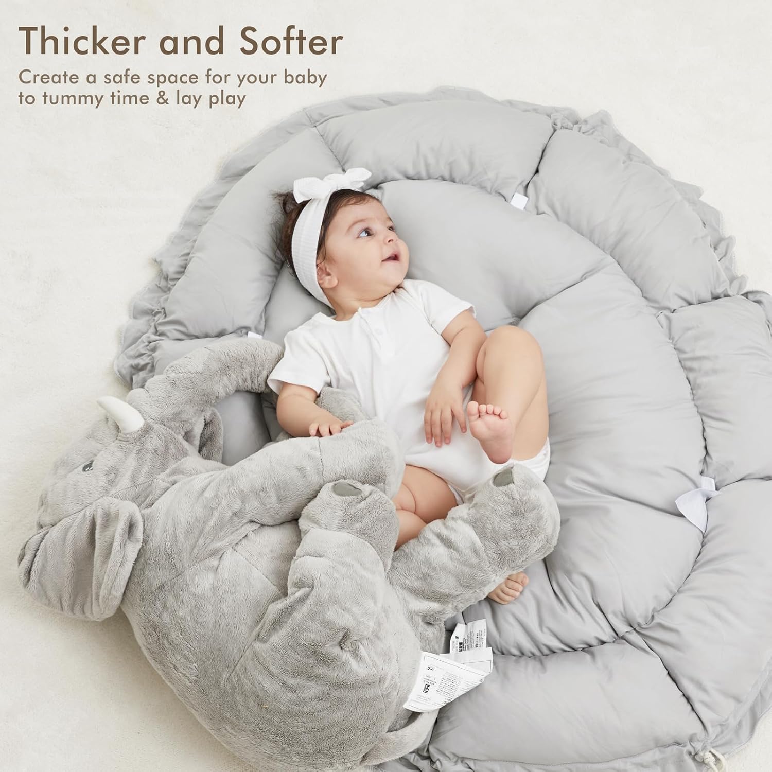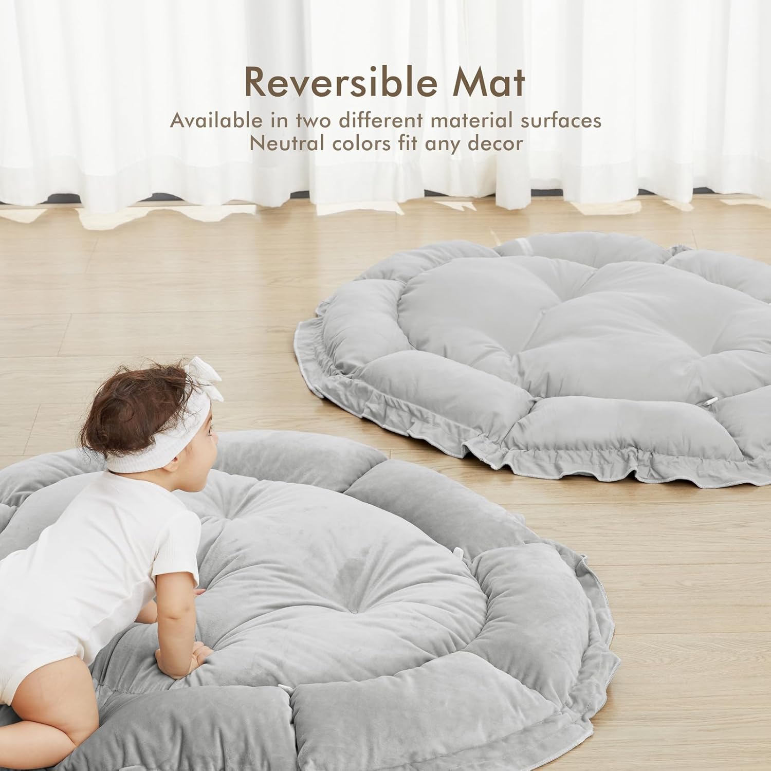 • THICKER & SOFTER: The reversible play mat crafted from premium plush material, offers a fantastic amount of cushion. Its neutral color scheme blends in with your home’s aesthetic so you can keep it out even after playtime is over.