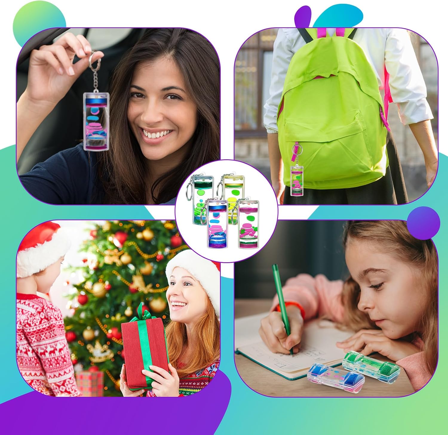 - Varied Selection and Assorted Colors: included in our set are 12 pieces of liquid motion bubbler keychains with 4 different color combinations that can cater to your diverse needs and preferences; Each keychain features a unique blend of colors, blue pink, blue green, pink green, and yellow green, that will surely captivate your attention