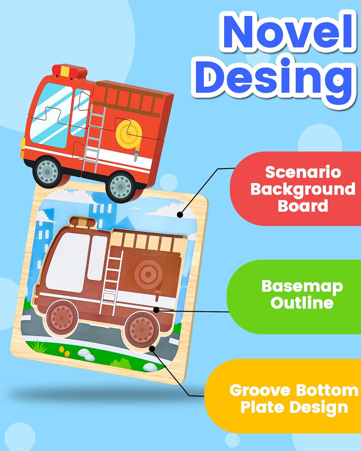Benresive Wooden Toddler Puzzles, Montessori Toys for 1 2 3 Year Old Boys, Toys for 1 2 3 Year Old Boy Birthday Gifts, 6 Pack Vehicle Toddler Learning Educational Puzzles