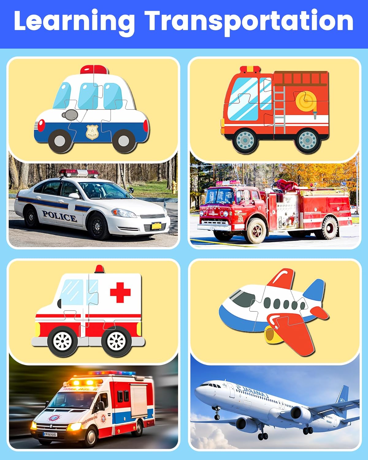 Benresive Wooden Toddler Puzzles, Montessori Toys for 1 2 3 Year Old Boys, Toys for 1 2 3 Year Old Boy Birthday Gifts, 4 Pack Vehicle Toddler Learning Educational Puzzles