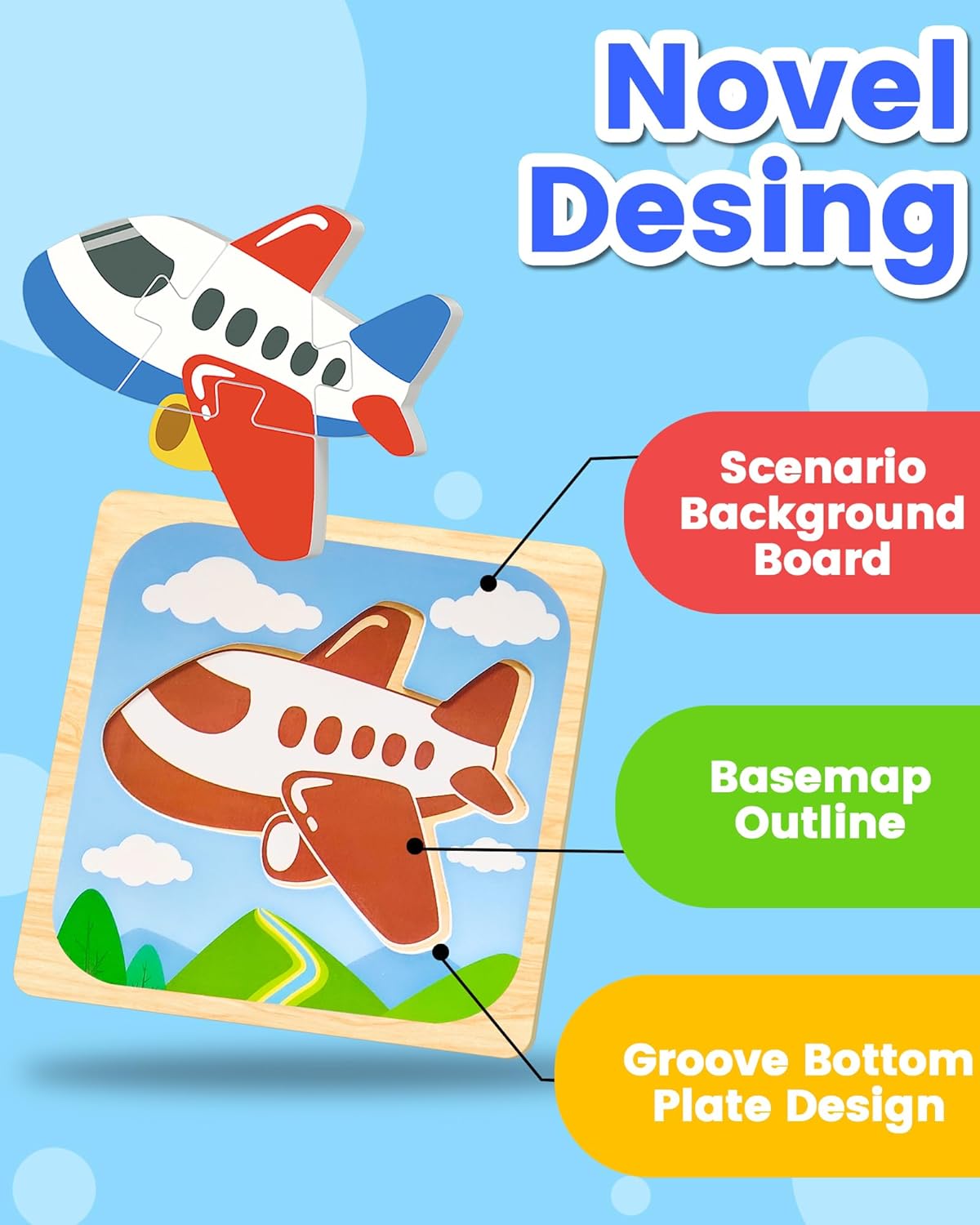 Benresive Wooden Toddler Puzzles, Montessori Toys for 1 2 3 Year Old Boys, Toys for 1 2 3 Year Old Boy Birthday Gifts, 12 Pack Vehicle Toddler Learning Educational Puzzles