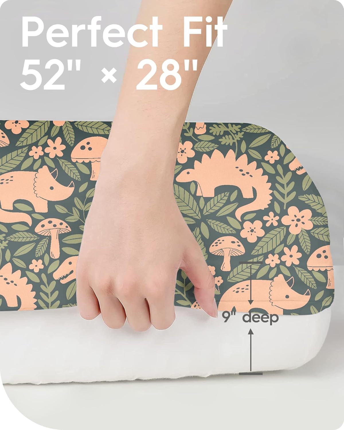 Dinosaur Crib Sheets for Boys, Premium Soft Crib Mattress Fitted Sheet, Ultra Breathable Baby Sheets, Super Stretchy Baby Bed Sheets 28x52x9 Extra Deep Pocket, 2 Pack