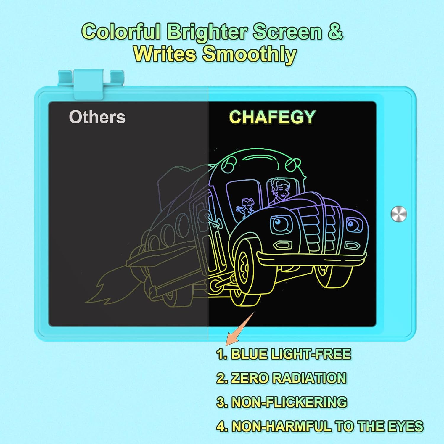 • 🖍️ 【Multi-Functional Screen】Drawing pad for kids adopts advanced pressure-sensing technology, the colors after drawing on it, smooth and Colorful, NO radiation, NO glare, NO blue light. Drawing board is a top-rated gift for Christmas, birthdays.