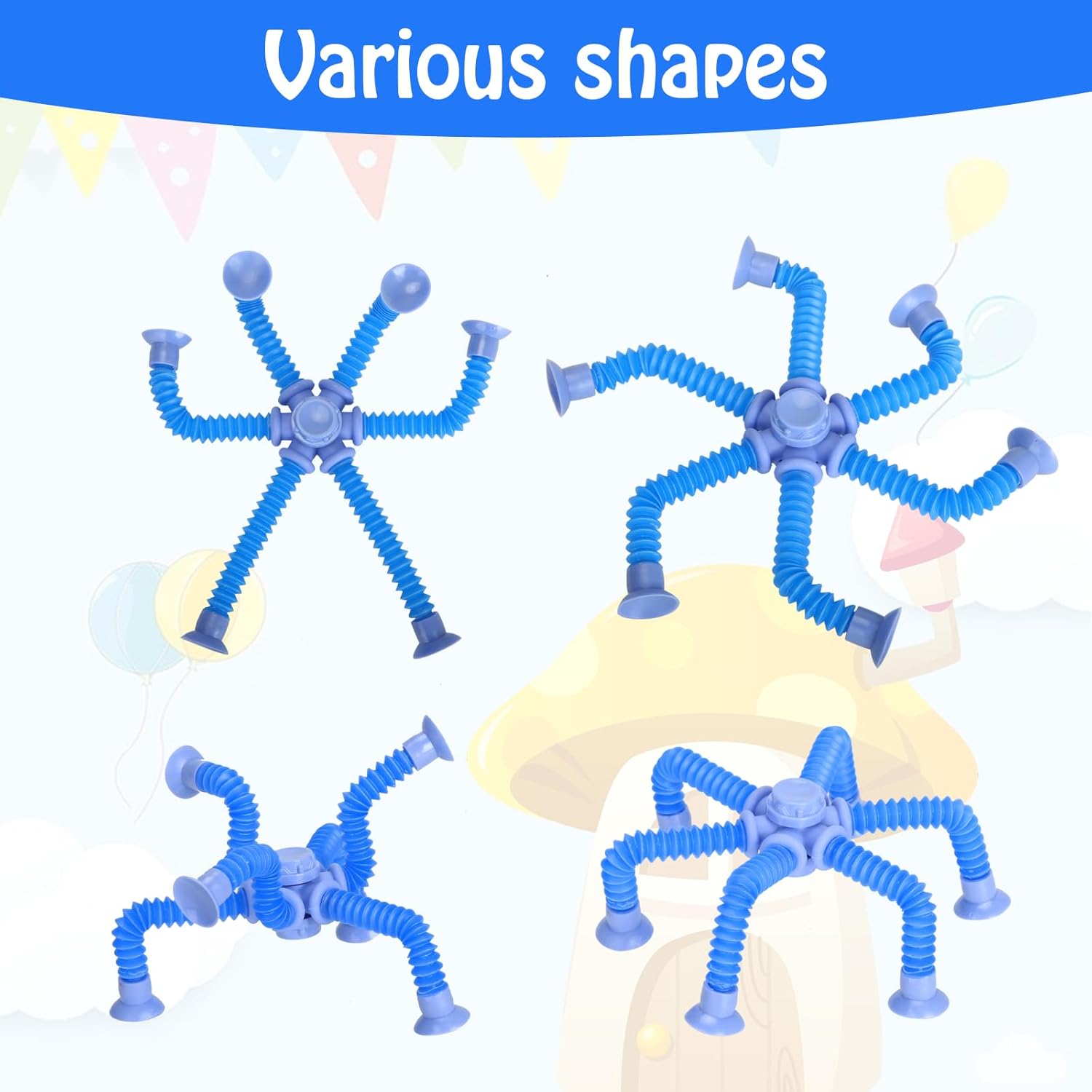 • 【6 Pack Fun Pop Tube Fidget Spinner Toys with Suction Cups】Fidget Spinner pop tubes fidget toys can change various shapes.Every stretch produces a satisfying popping sound, soothing your ears, releasing work pressure from adults, and relieving children's anxiety about learning