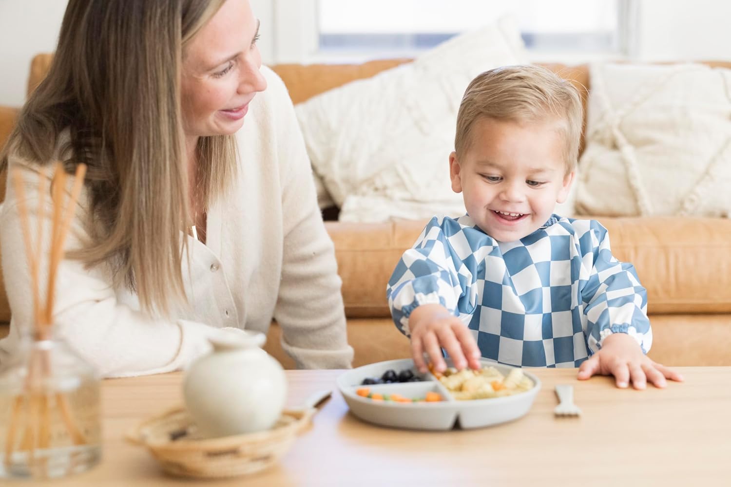 Tiny Twinkle Mess Proof Baby Bib,Waterproof Smock Baby Bib for Eating,Machine Washable Long Sleeve Bib,Baby Led Weaning,Toddler Bib (Checkers Blue, Small 6-24 Months)