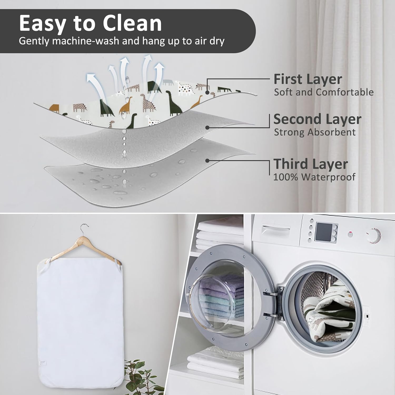 Baby Diaper Changing Pad, 21 5/8" x 31.5" Waterproof Changing Pad Liners - Reusable Soft and Absorbent Portable Changing Mat(Cute Dinosaur1PCS)