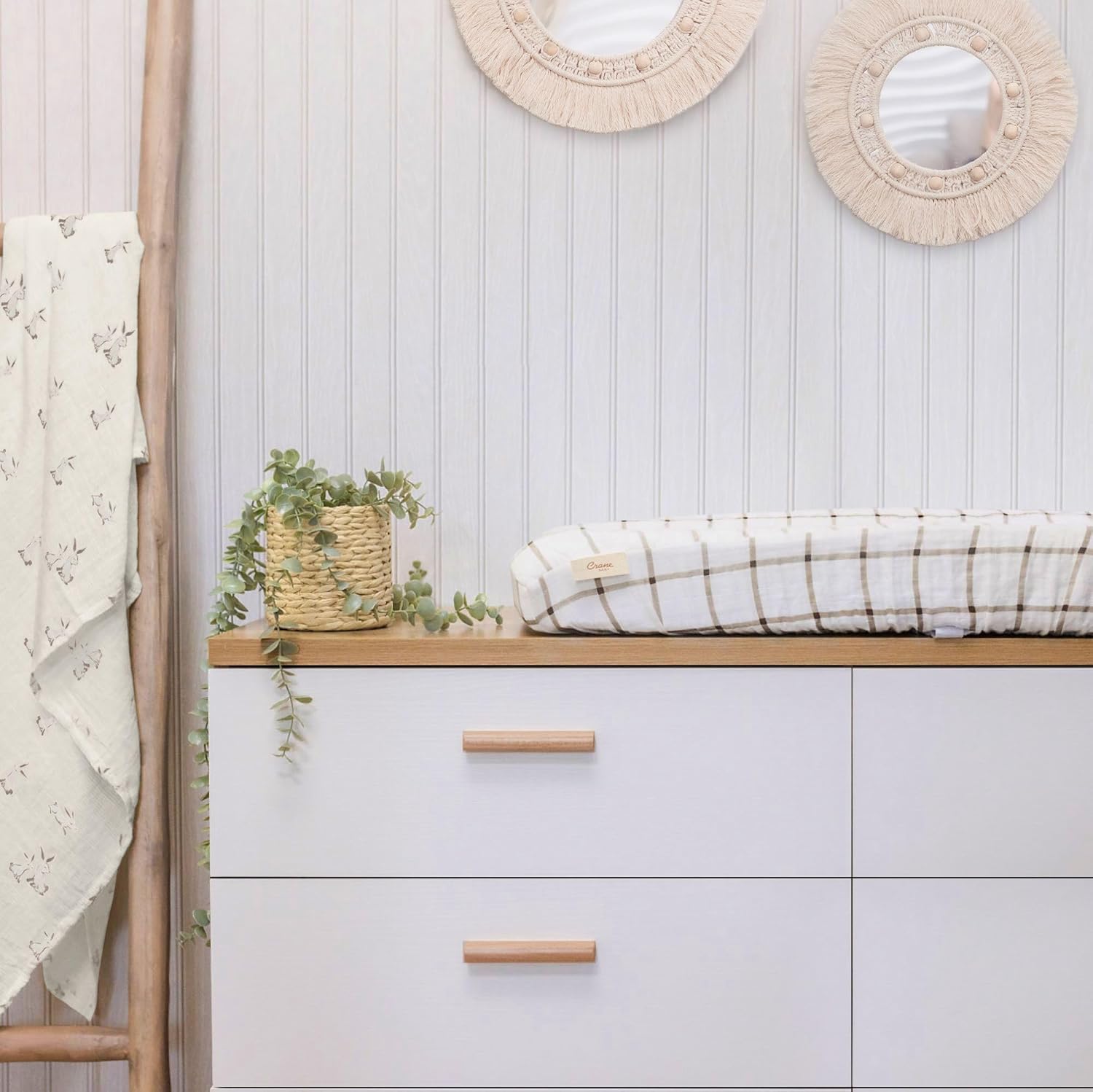 • Nursery Style - Elevate your baby’s nursery with our chic check-patterned cover, crafted to add a serene touch with its natural color palette, blending seamlessly with any décor and makes a perfect registry gift