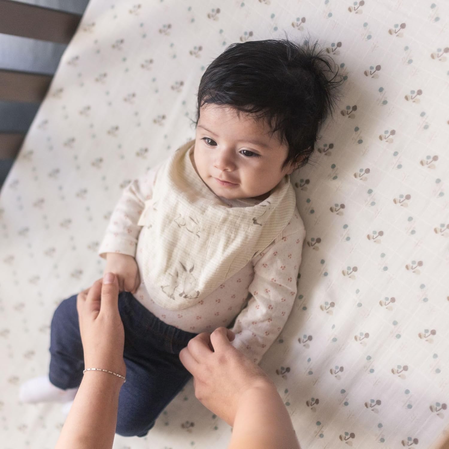 • Certified Organic Comfort: Our Avery Organic Bib Set includes three hand-crafted bibs made from the finest GOTS certified organic cotton, ensuring a soft and gentle touch against your baby's skin during mealtime