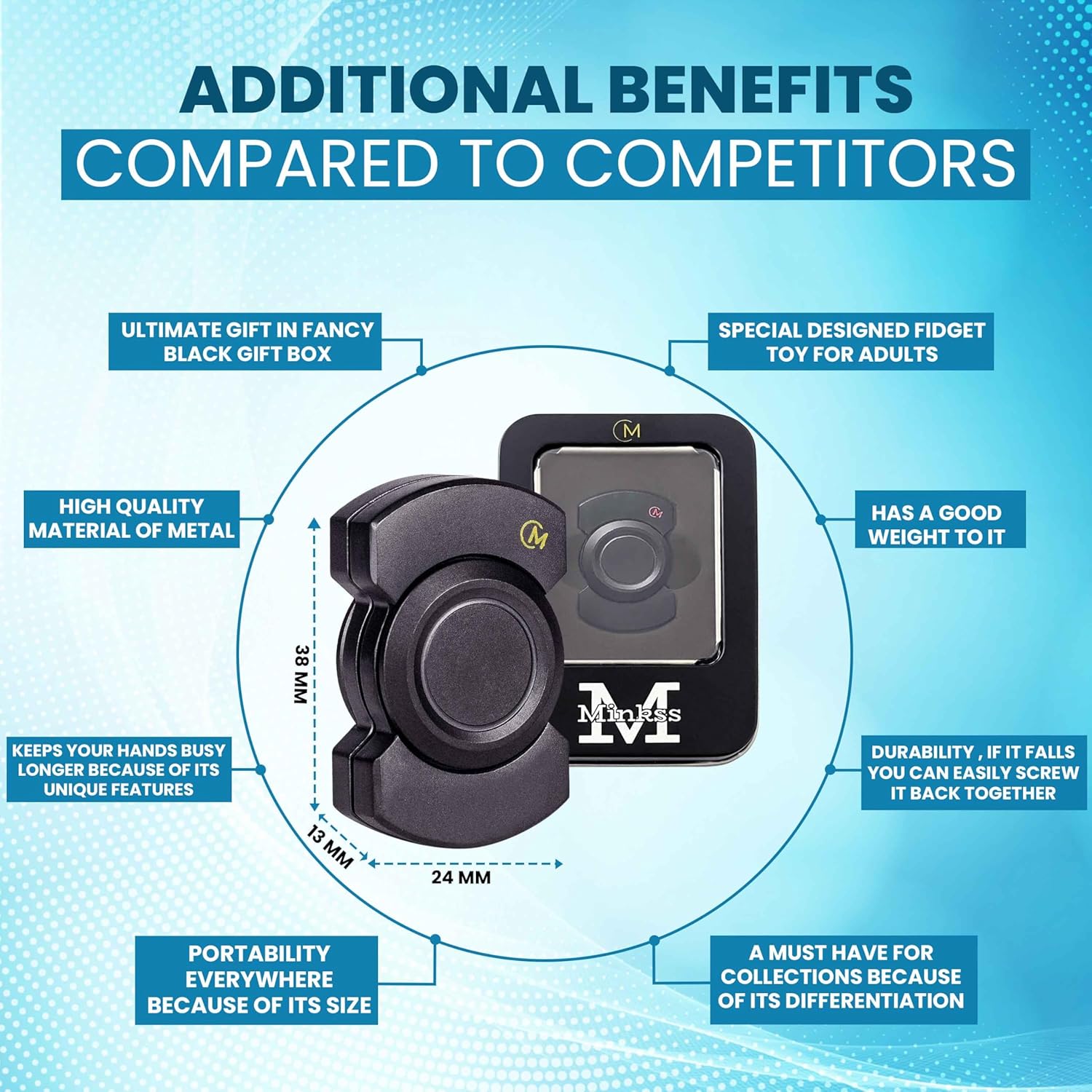 • 👍 [EASY TO CARRY FIDGETS FOR ADULTS] This fantastic little magnetic fidget toy spinner fits perfectly in your pocket, bag or even wallet if you wish so. It is a perfect way to have fun anywhere and at all times.