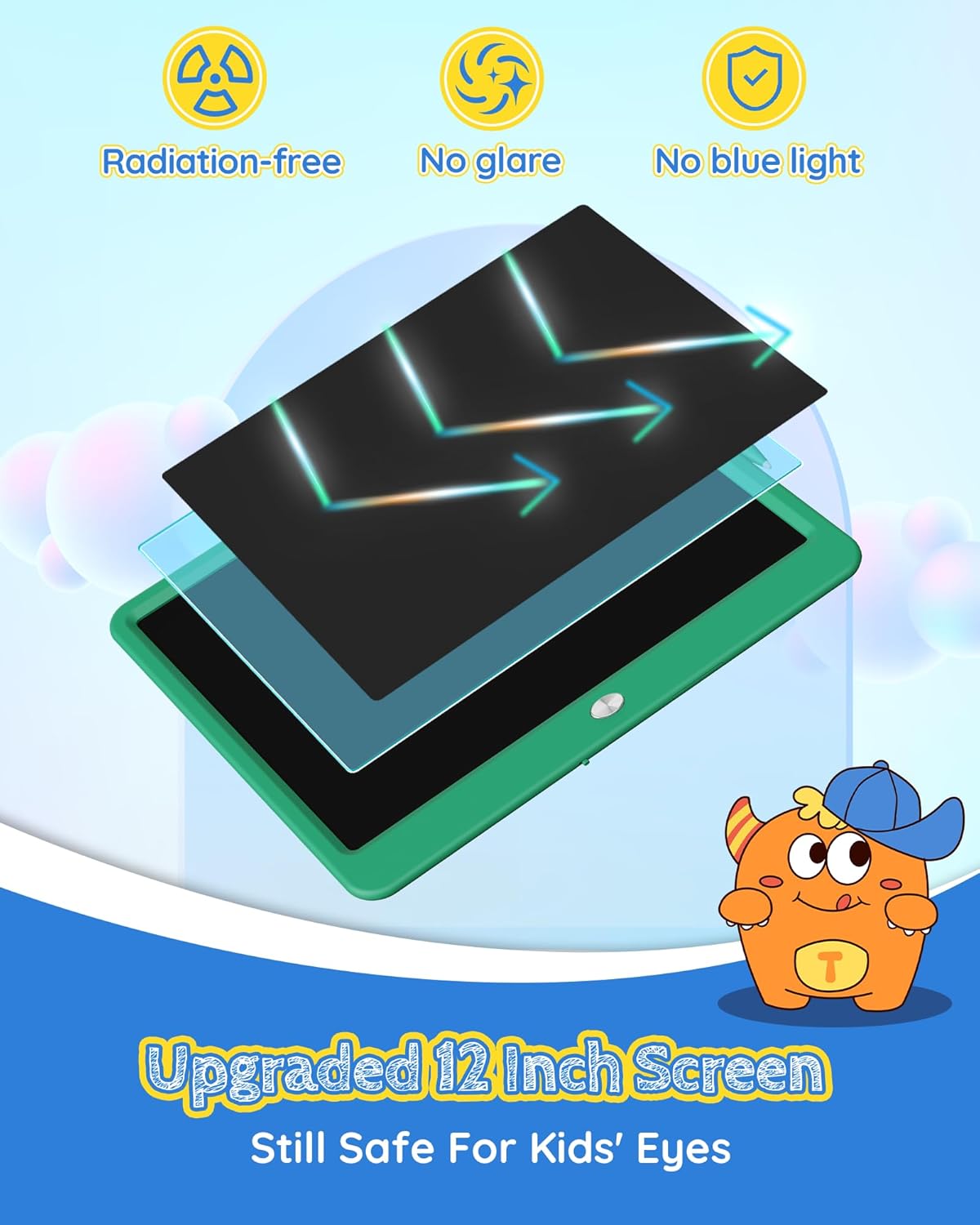- Free Child’s Imagination: Tekfun LCD writing tablet for kids or teens provides the upgraded 12 inches of space for writing and drawing, free children's imagination. The eye-protection colorful screen of doodle board provides a better painting experience, avoiding injury to a child’s eyes from long-term use