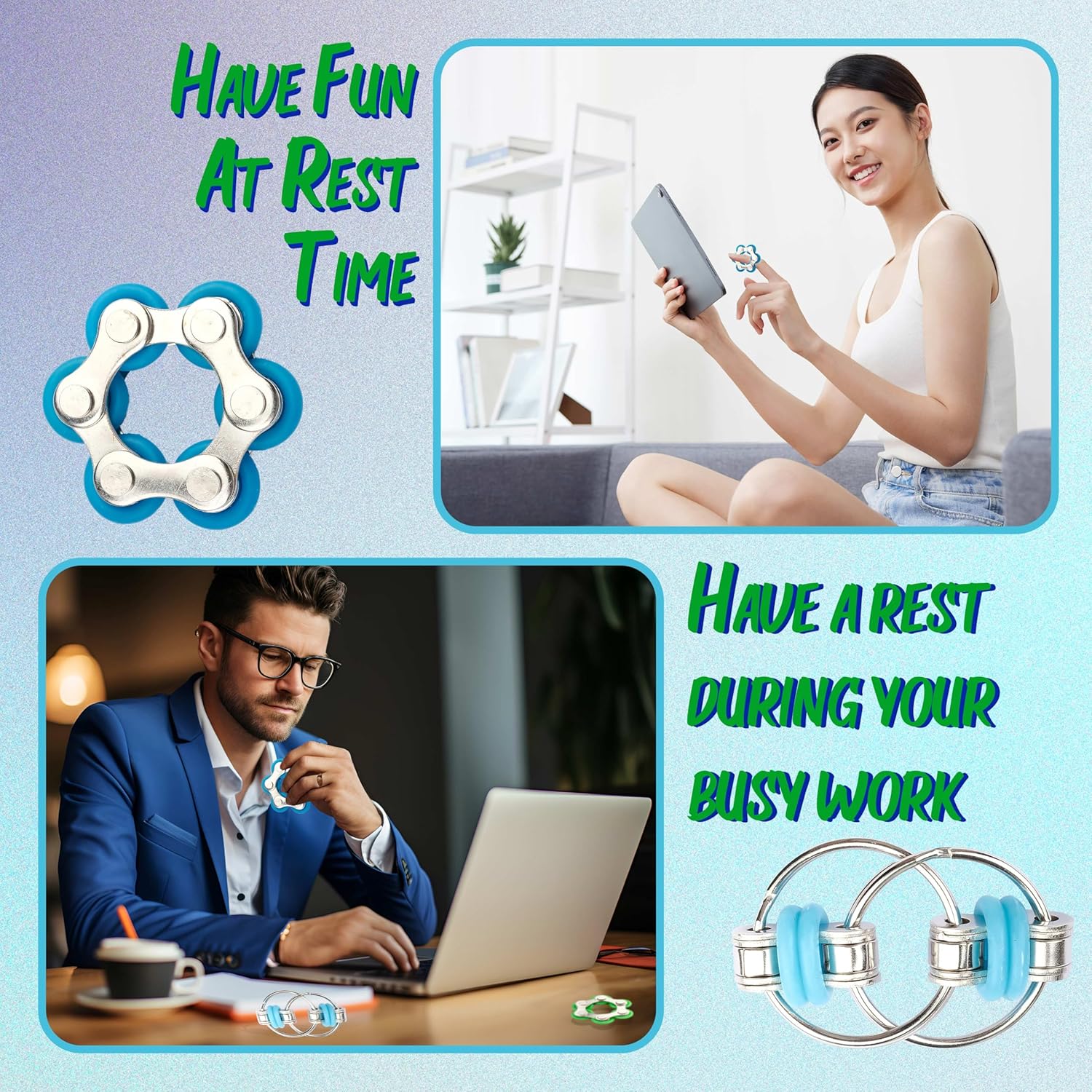 • 🎁10 Set Fidget Packs: 2 Roller Chains, 2 Marble Mesh Fidget Toys, 2 Spiky Sensory Fidget Rings, 2 Six Roller Bike Chain Fidget, 2 Pea Pod. 5 kinds of various fidget toys help you relieve stress.