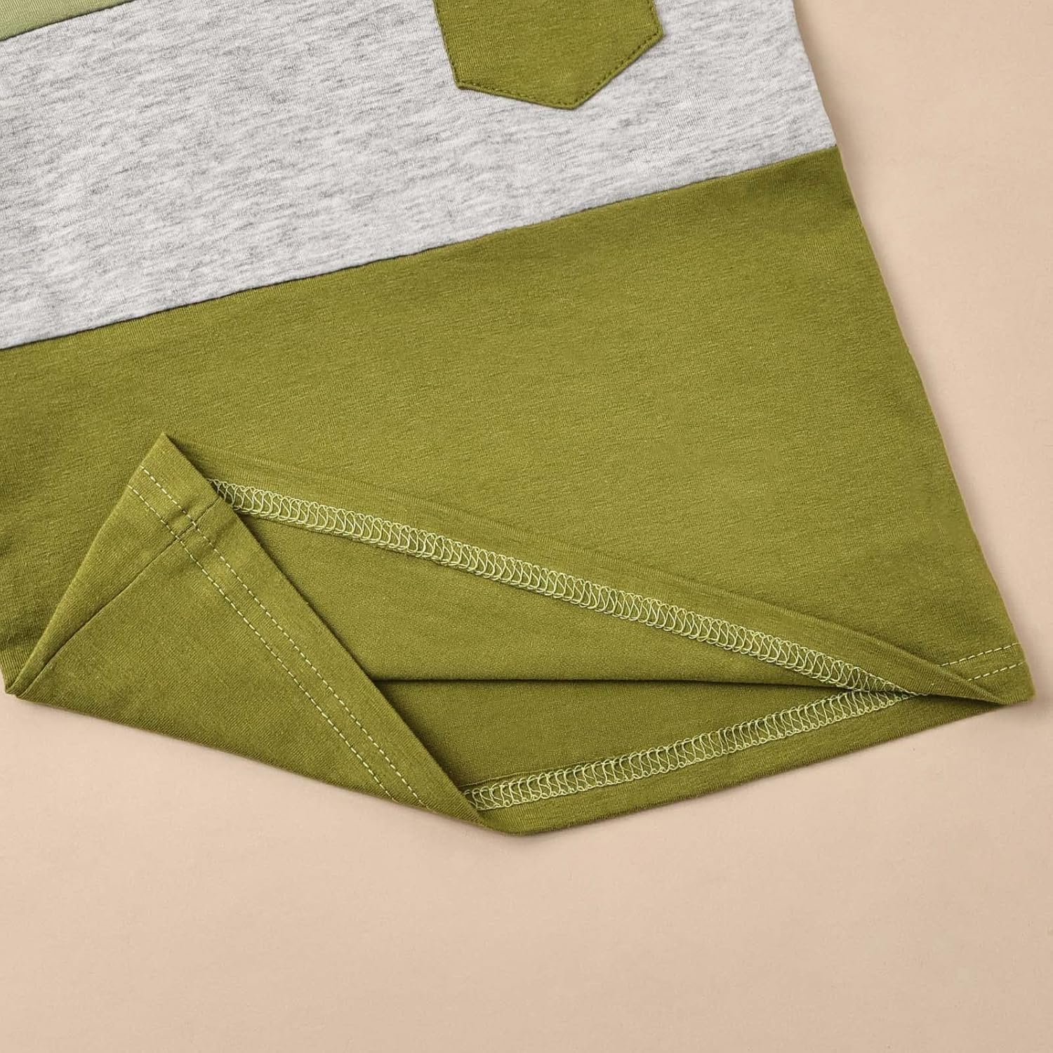 • ✯ Fashion Stitching and Contrasting Color Design: The top t-shirt has a cute little pocket in the front and comes in a variety of contrast colors, giving your sweet toddler baby boy a stylish look this summer. The solid shorts feature a high-quality elastic waistband and convenient side pockets, perfect for your little guys to put things such as while on the go.