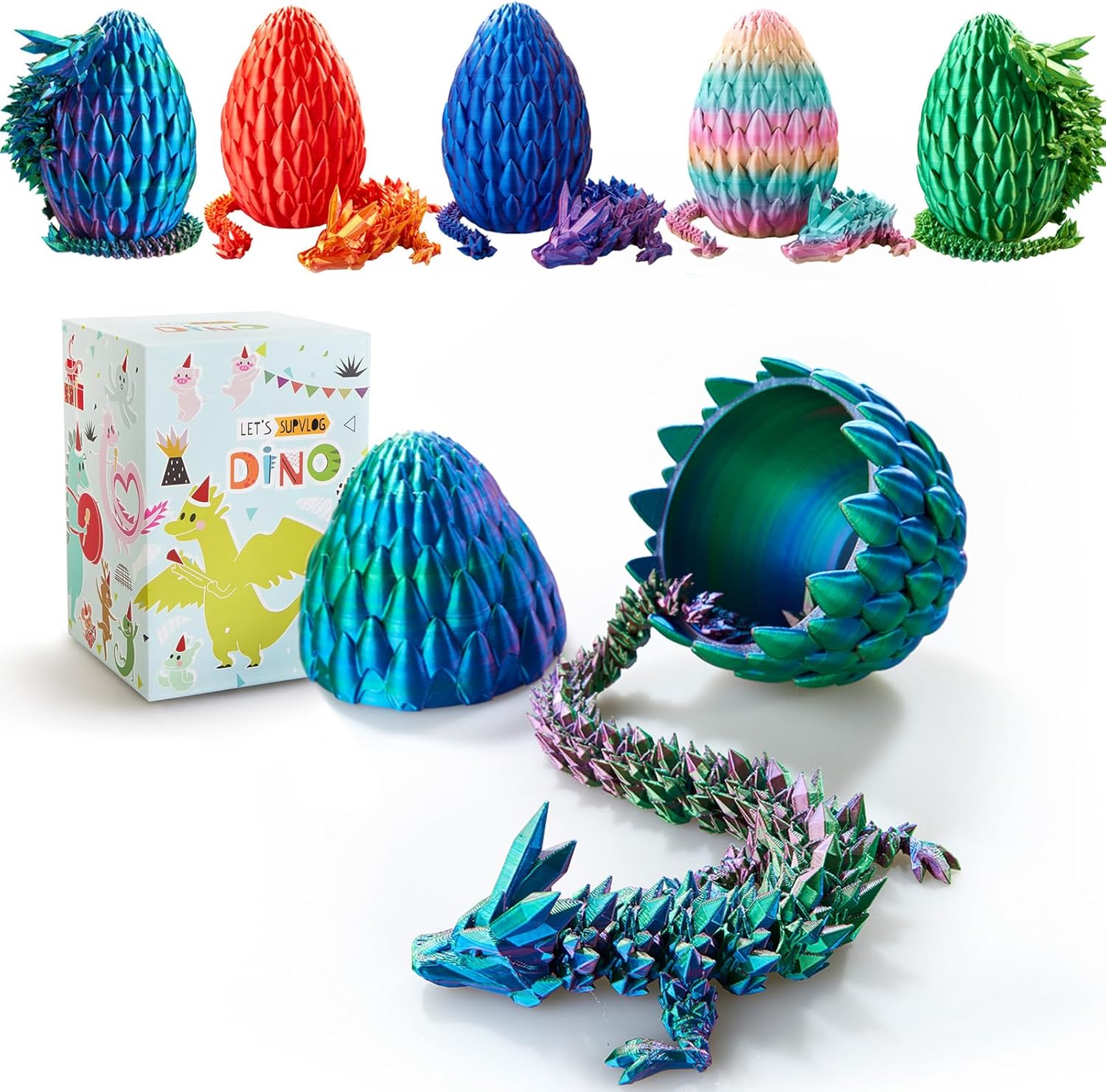 Dragon Egg,15in Crystal Dragon,Surprise Egg,Articulated Dragon,3D Printed Gift Toy,Fidget Toys for Autism/ADHD, Executive Desk Toys,Home Office Decor (3 Color Dazzle)
